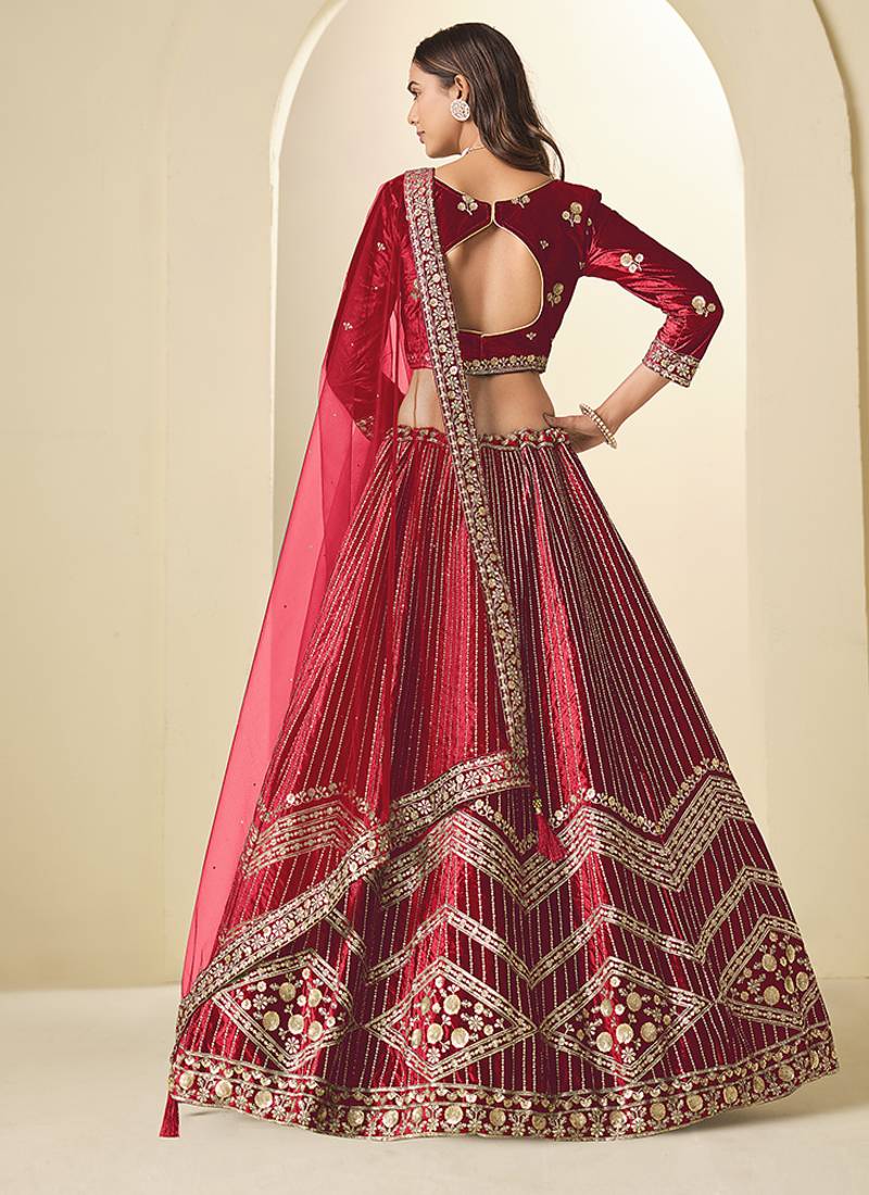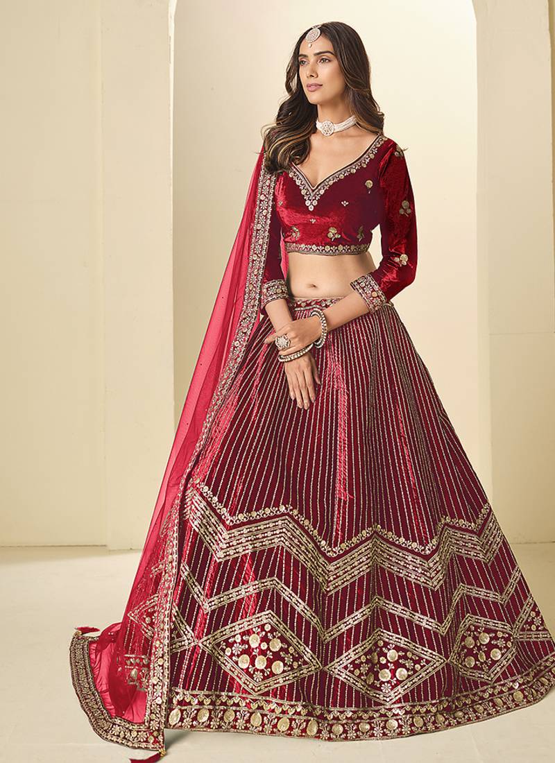 Product Name Maroon Velvet Embroidered Sequins Work A Line Lehenga Choli