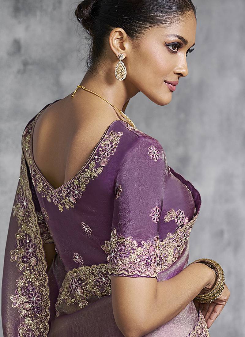 Product Name | Mauve Tissue Traditional Saree With Embroidered, Resham And Thread Work For Ceremonial | |