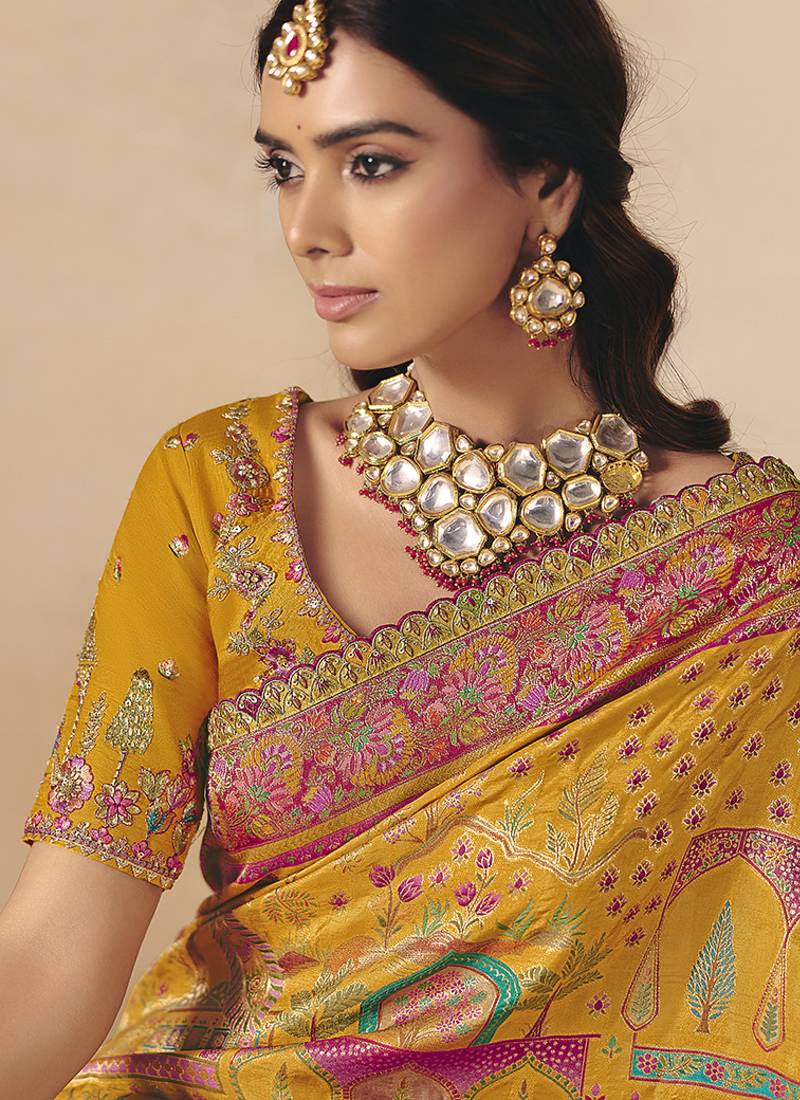 | Product Name | Mustard Embroidered Silk Blend Saree | |