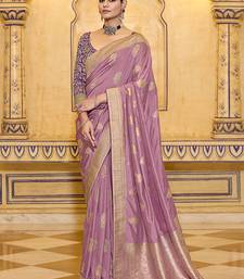 Onion pink faux crepe art silk with beautiful zari weaving work classic saree