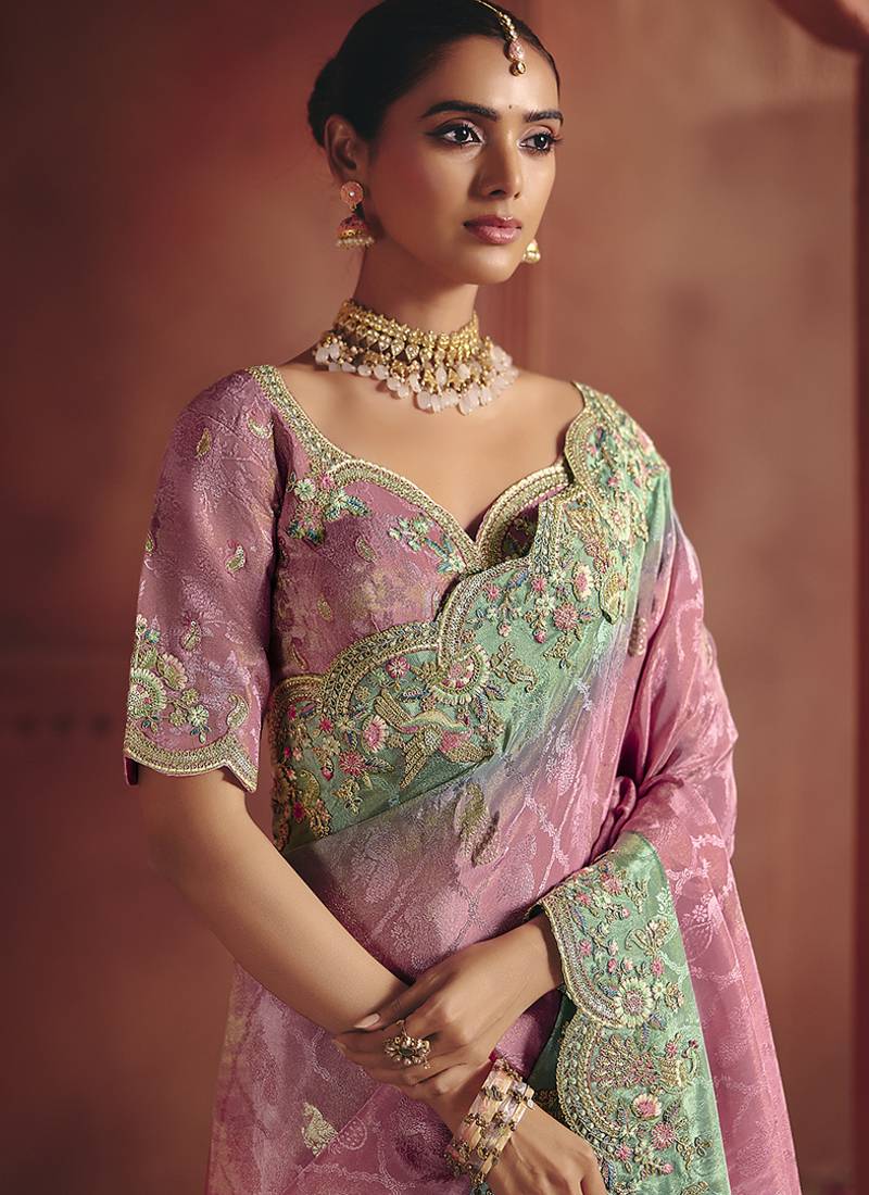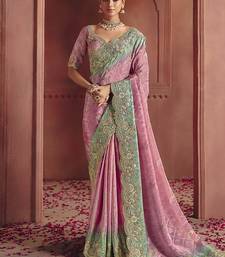 Pink silk blend embroidered saree