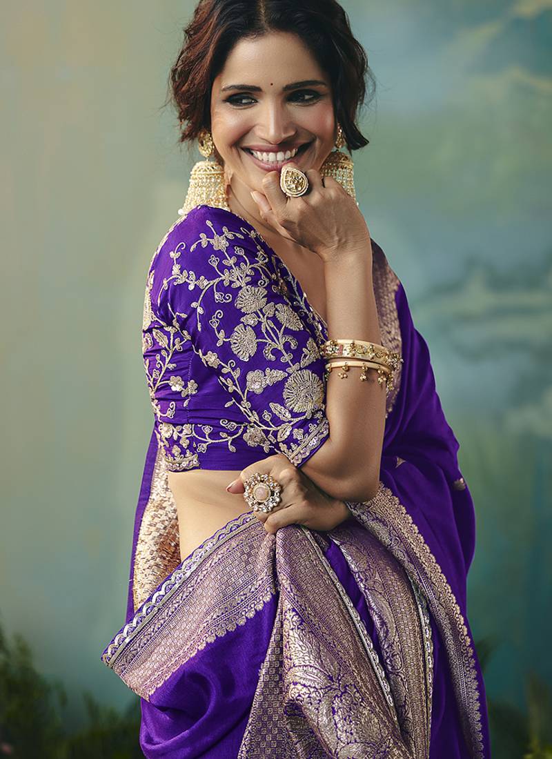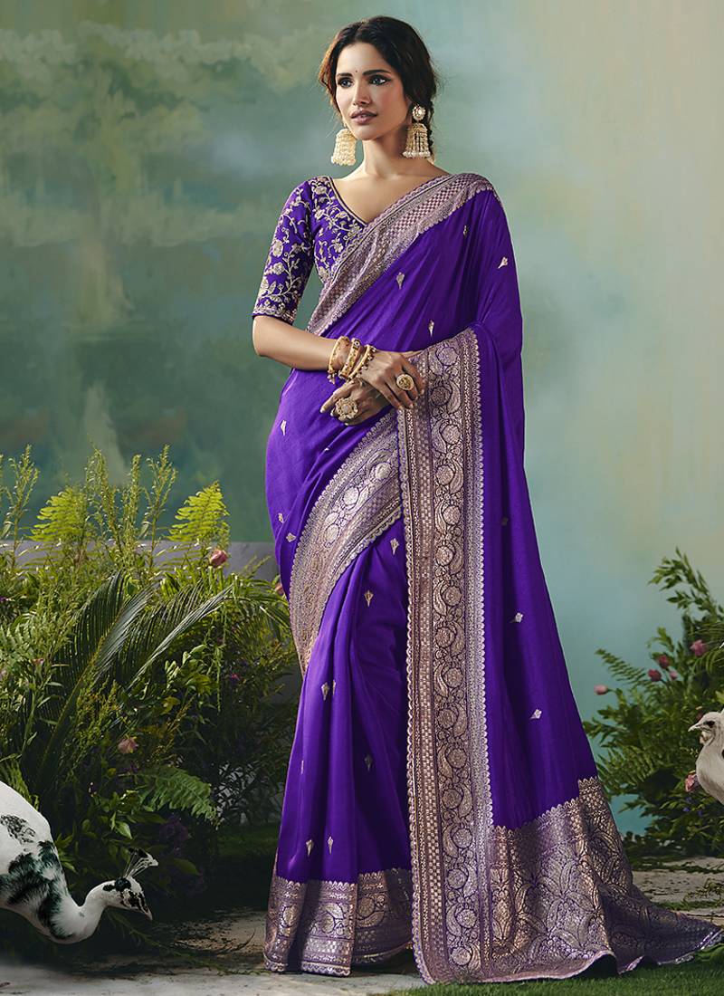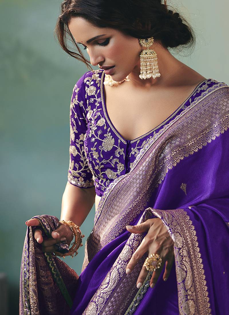 Purple dola viscose silk saree with zari weaving & sequence work blouse