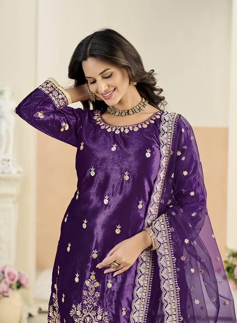 Product Name Purple Velvet Embroidered Salwar Kameez With Patiala Bottom