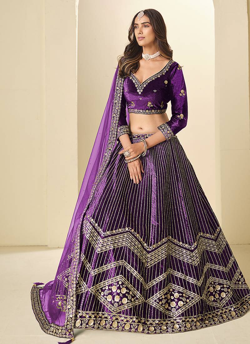 | Product Name | Purple Velvet Embroidered Sequins Work A Line Lehenga Choli | |