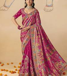 Rani pink embroidered silk blend saree