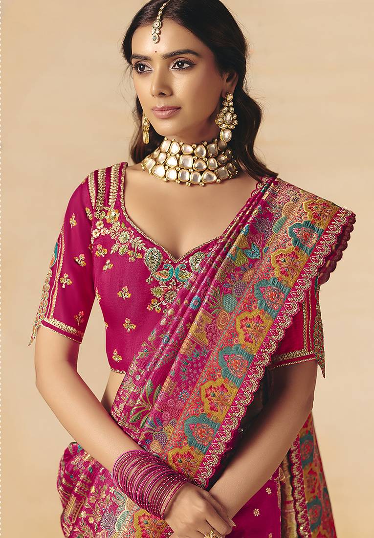Product Name Rani Pink Embroidered Silk Blend Saree