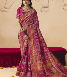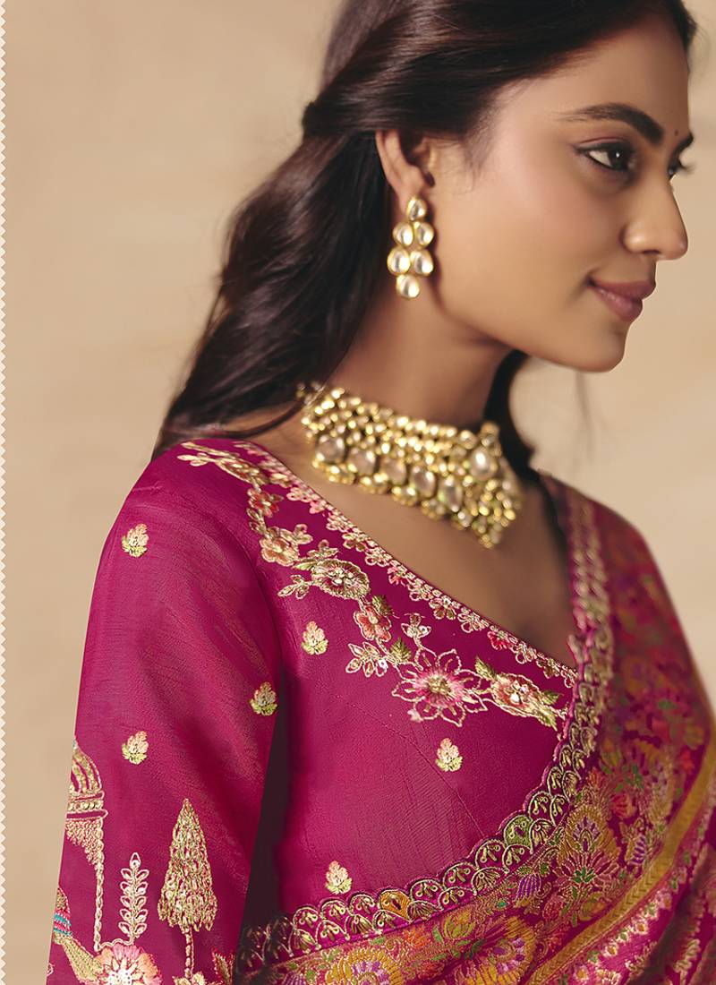 Rani pink embroidered silk blend saree