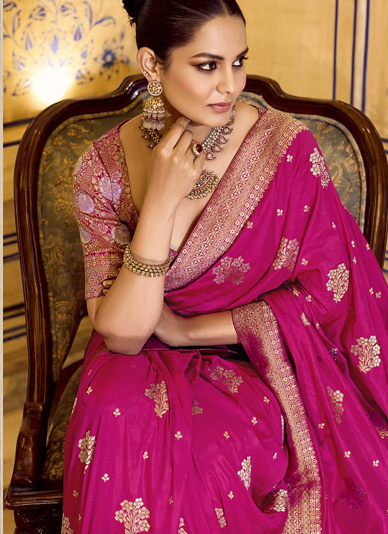 Rani pink faux crepe art silk with beautiful zari weaving work classic saree
