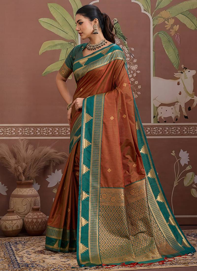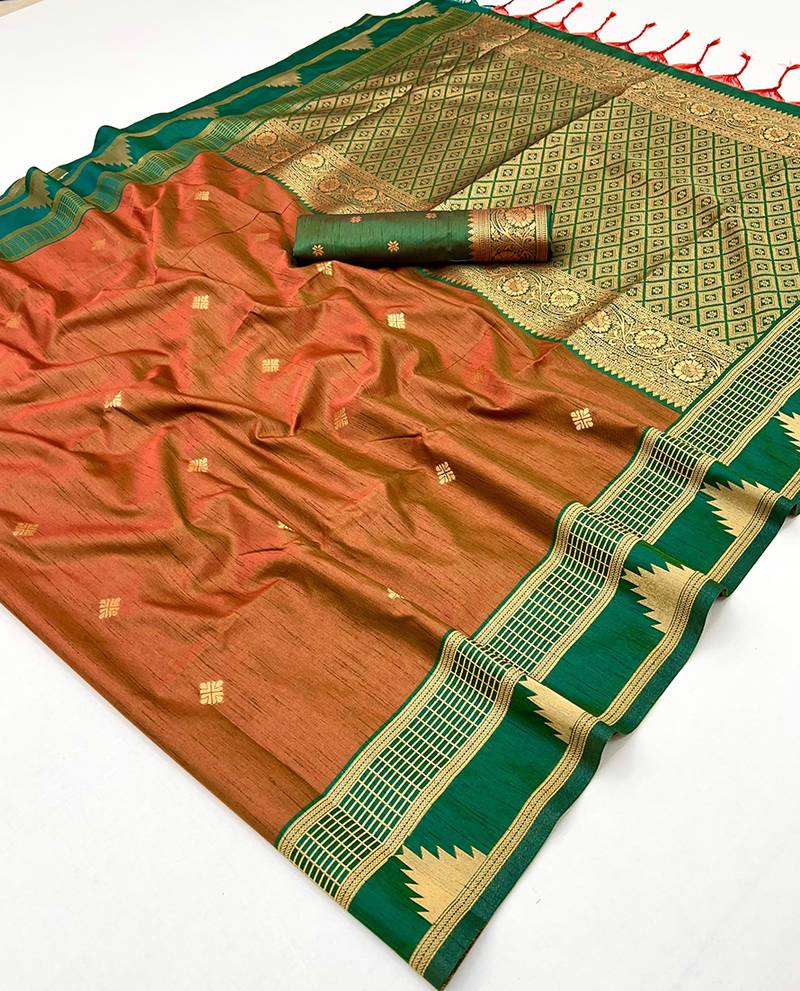 | Product Name | Rust Weaving Work Tussar Art Silk Festival Contemporary Saree | |