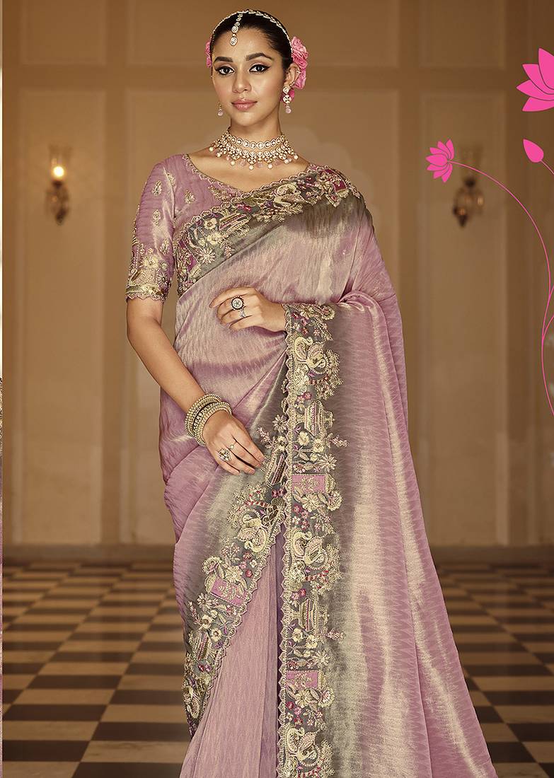 | Product Description | Elevate Your Festive Elegance With This Exquisite Silk Blend Saree, Beautifully Shaded In Onion Pink. The Saree Is Adorned With Intricate Meenakari Zari Weaving And Ornate Floral Borders, Blending Traditional Artistry With Contemporary Finesse. Its Rich Silk Blend Fabric Lends A Lustrous Drape, While The Scalloped Detailing And Delicate Embroidery Enhance Its Regal Charm. Perfectly Paired With A Finely Crafted Blouse, This Ensemble Is Ideal For Weddings, Sangeet Ceremonies, And Grand Festive Celebrations. A True Statement Of Luxury, This Banarasi Masterpiece Captures Timeless Tradition With A Modern Touch—Making It A Must Have For Your Festive Wardrobe. |