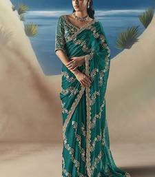 Teal fancy fabric with designer embroidery sequince work saree