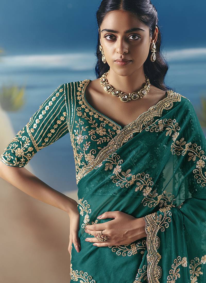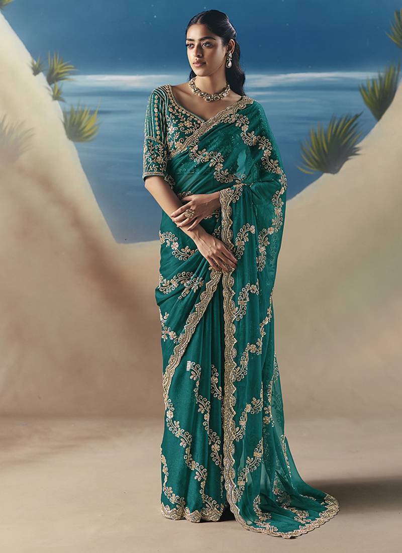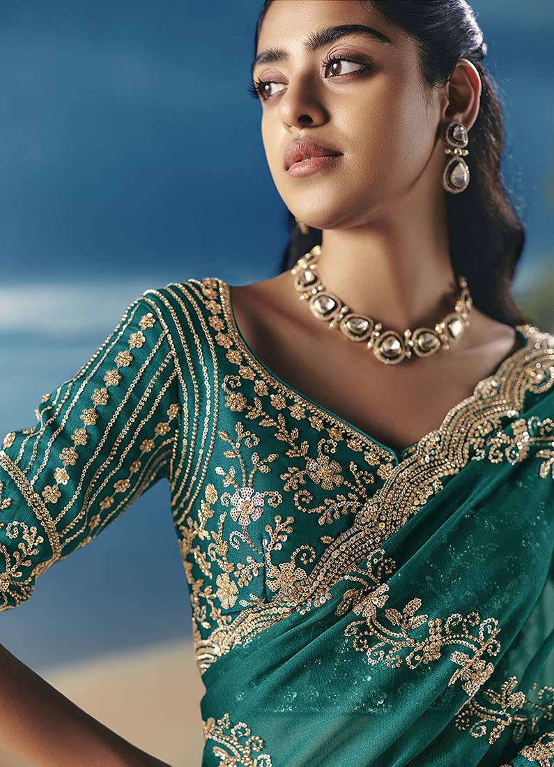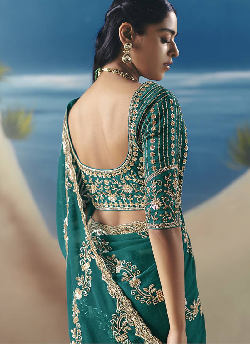 | Product Name | Teal Fancy Fabric With Designer Embroidery Sequince Work Saree | |