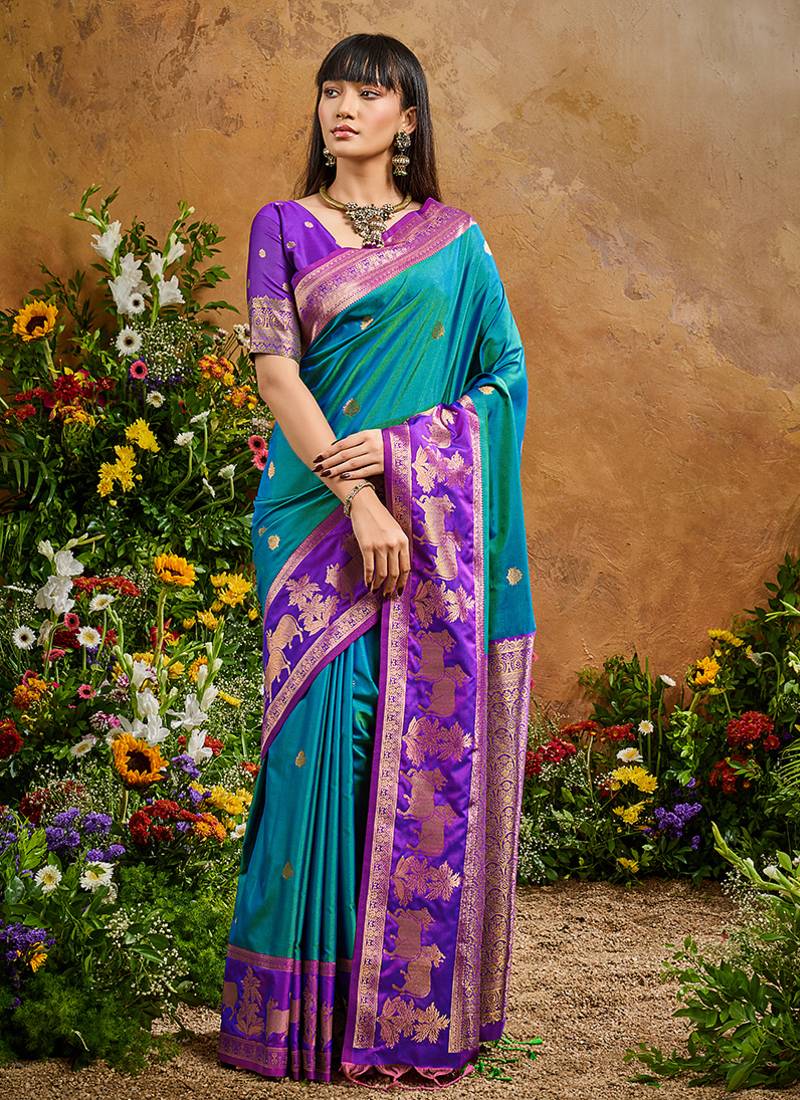 | Product Name | Teal Handloom Weaving Silk Blend Saree | |