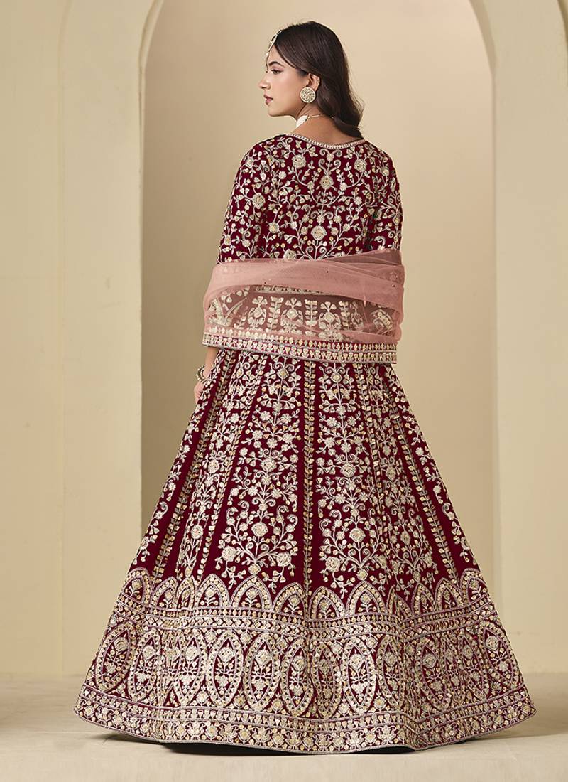 | Product Name | Velvet Embroidered Maroon Engagement Wear Anarkali Suit | |