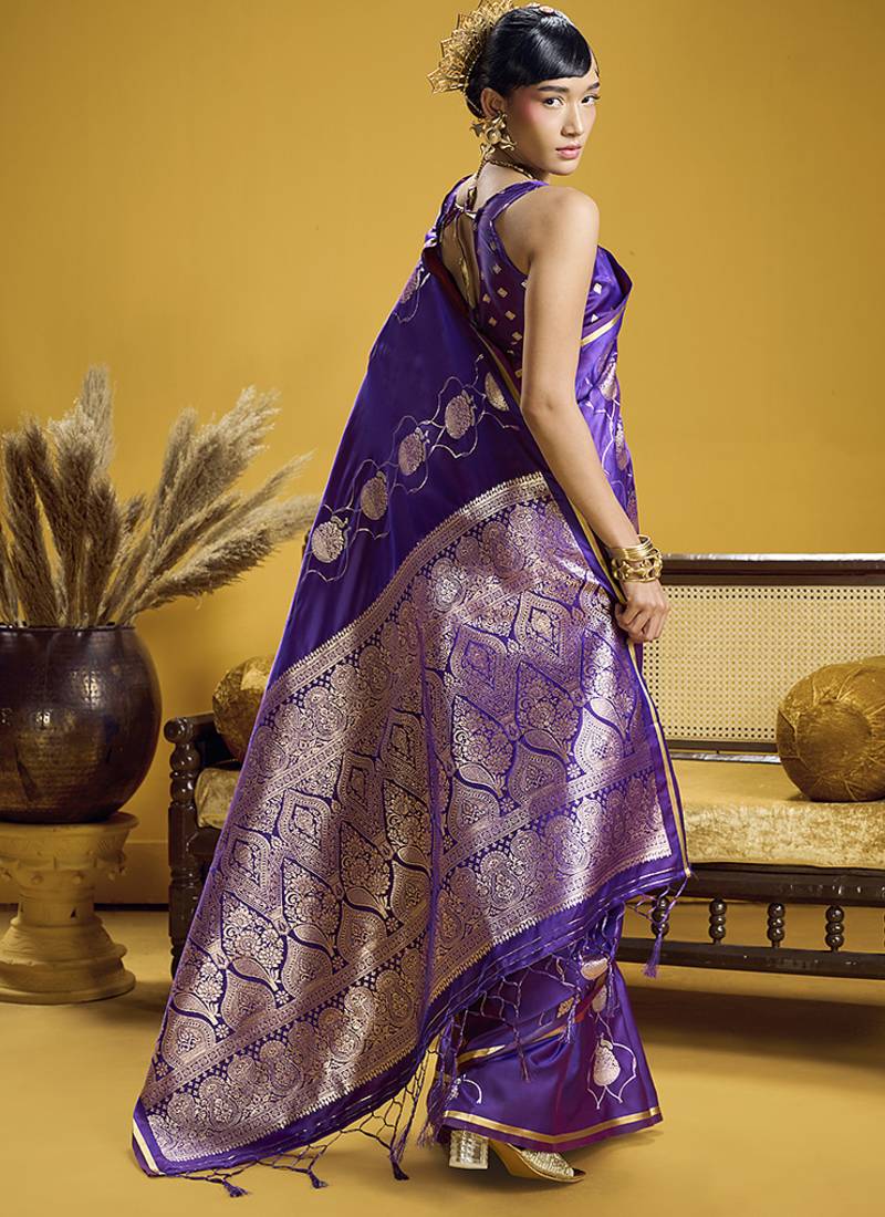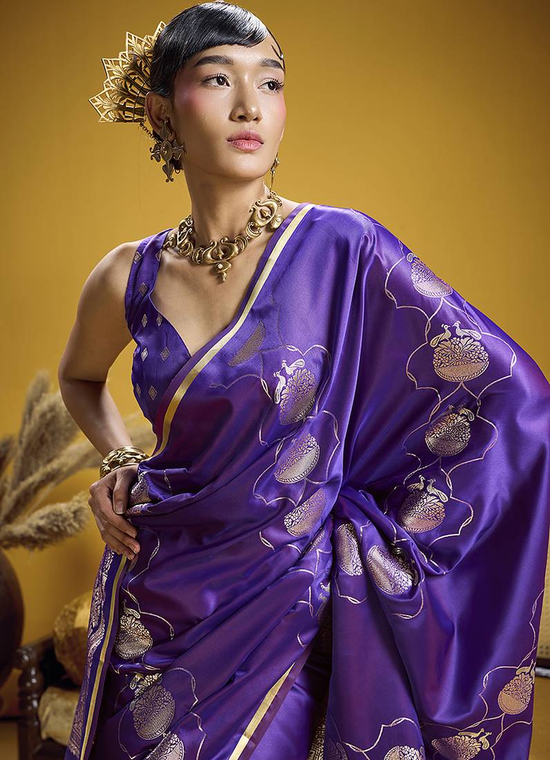 | Product Name | Violet Handloom Satin Saree With Weaving Work | |