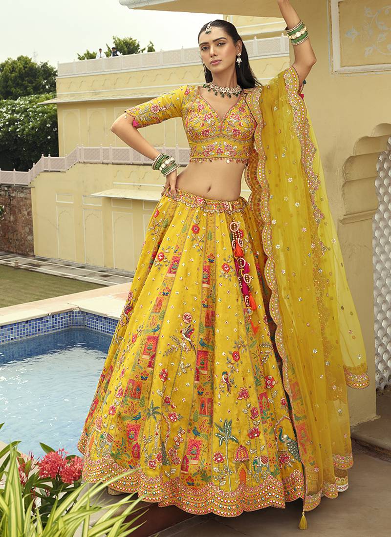 | Product Name | Yellow Art Silk With Embroidered Cut Work Readymade Bridal Lehenga Choli Full Stitched Free Size | |