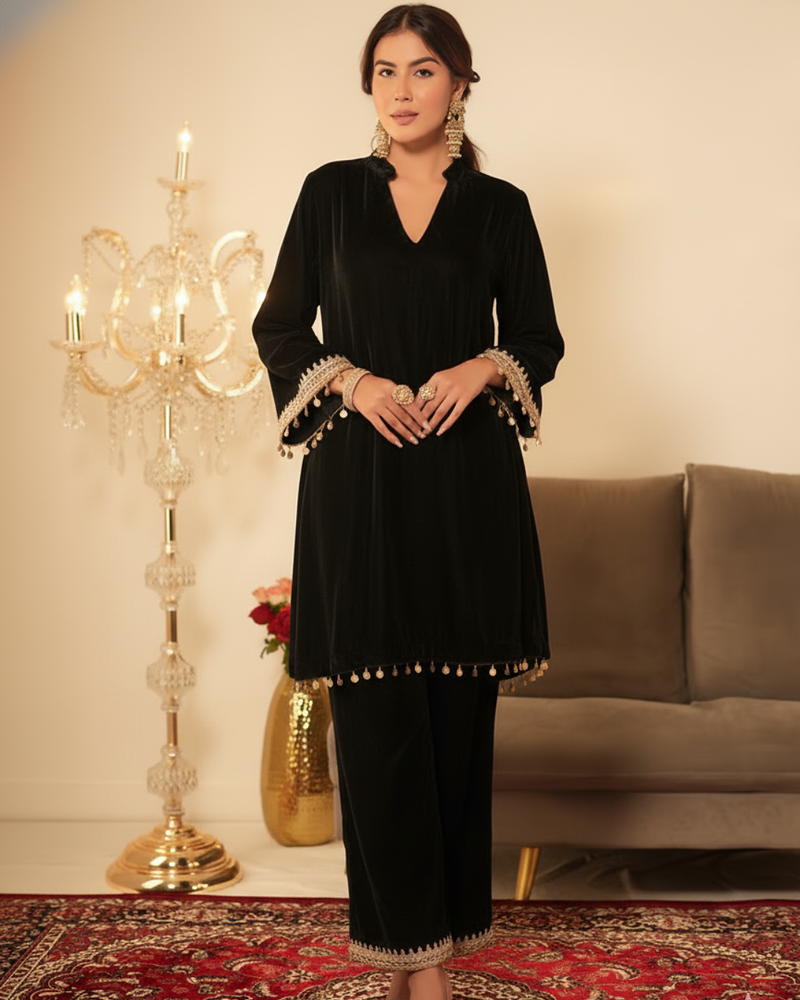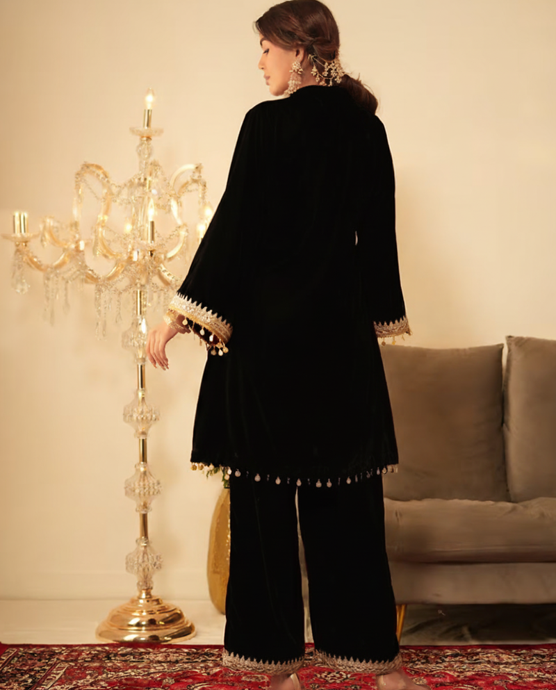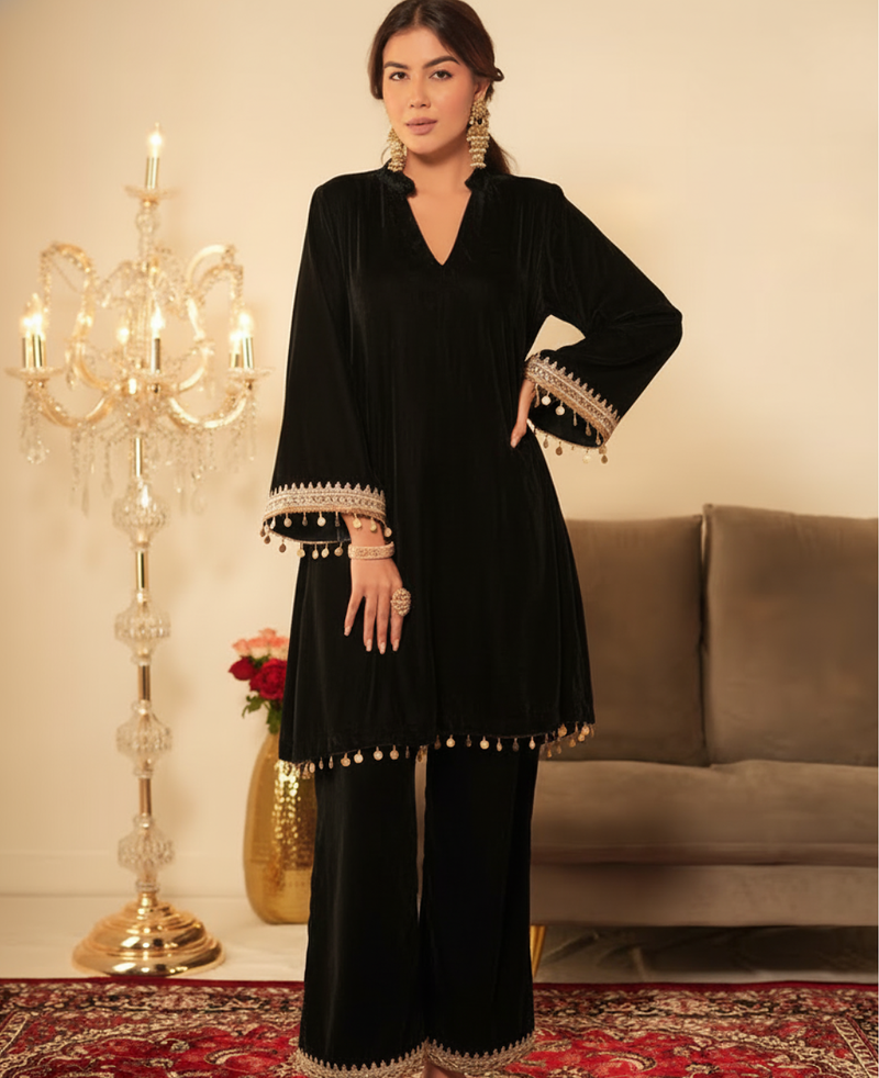 | Product Name | Black Velvet Short Kurta Palazzo Set With Gotta Lace Work | |