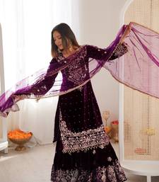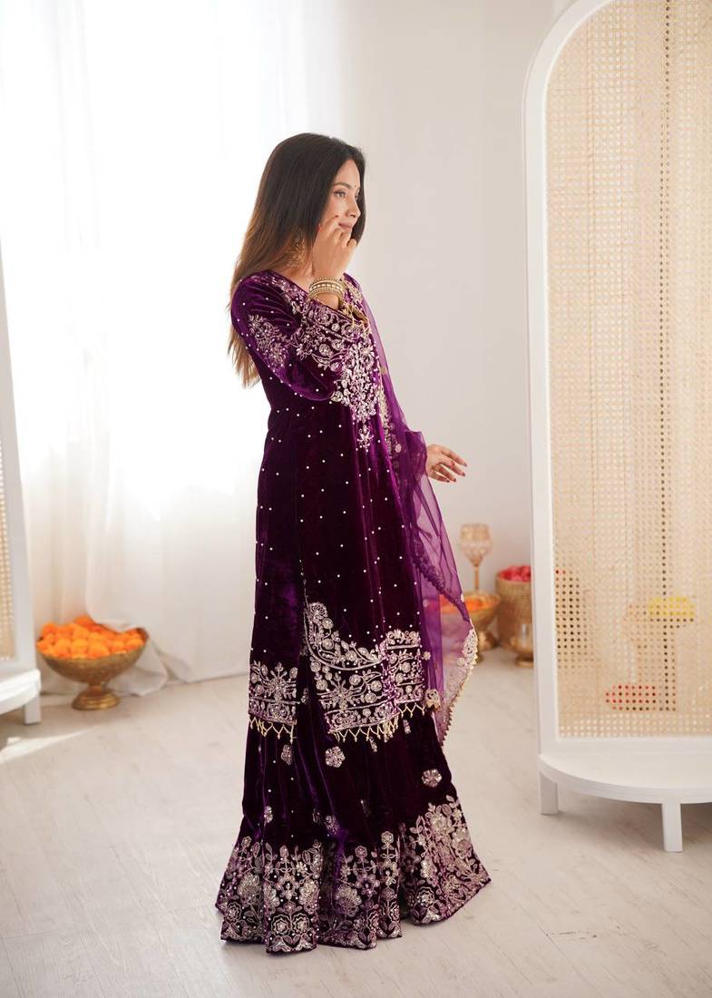 | Product Name | Elara Noor Cording Embroidered Wine Velvet Sharara Set For Weddings | |