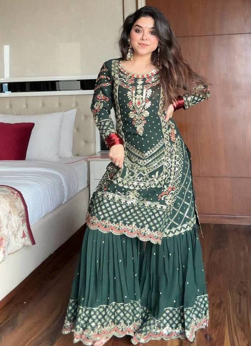 | • | Bottom | : | Color- Dark Green / Fabric- Georgette |