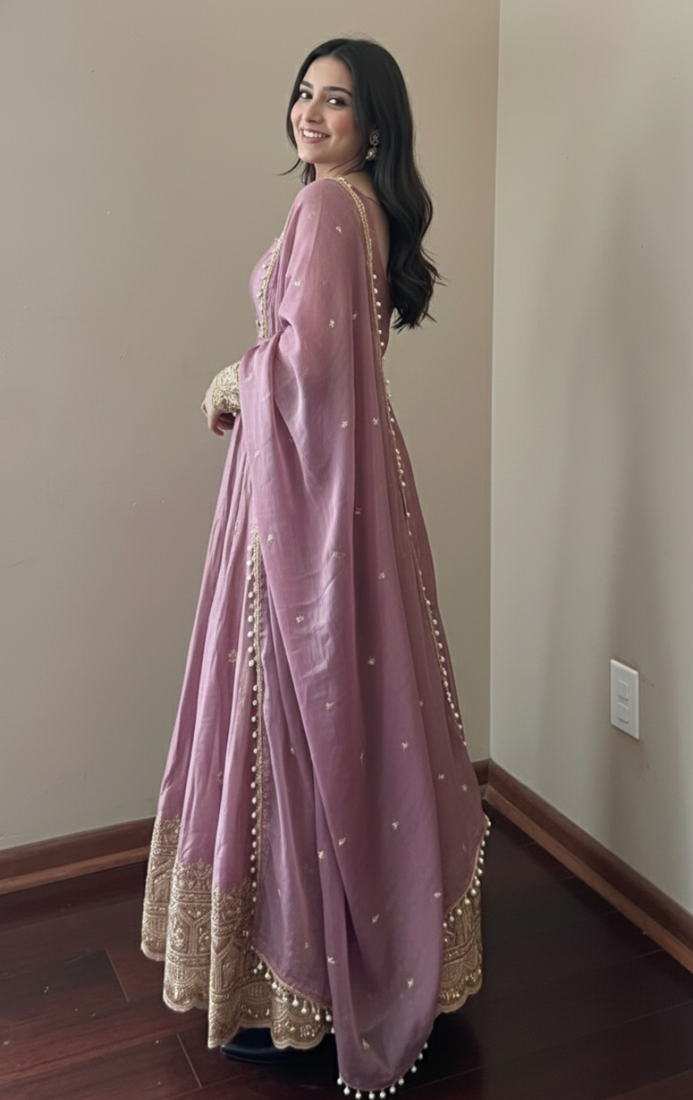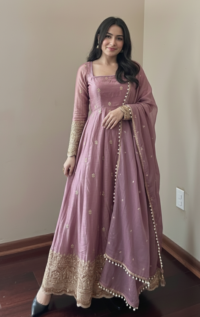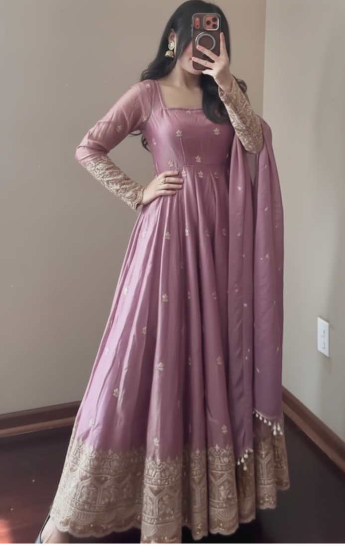 Product Name Mauve Embroidered Fendy Silk Anarkali Set
