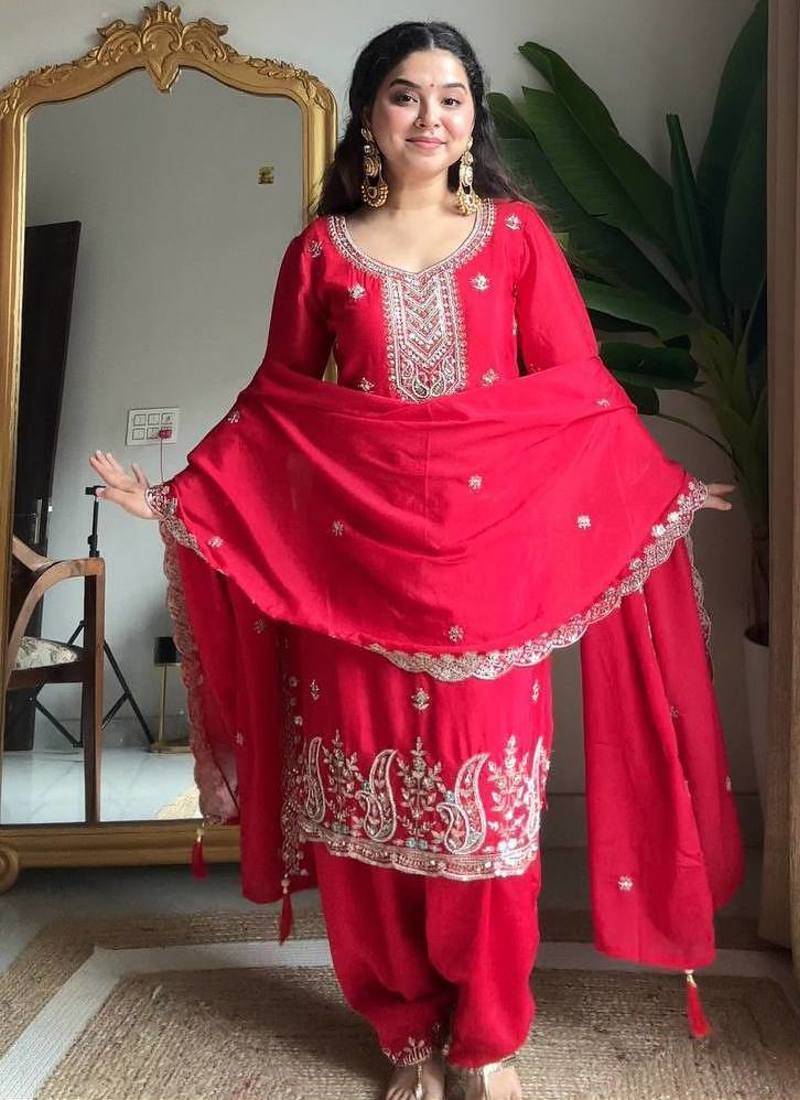 | Product Name | Red Chinon Embroidered Salwaar Suit | |