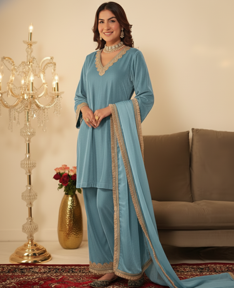 | Product Name | Sky Blue Gotta Work Kurta Set | |
