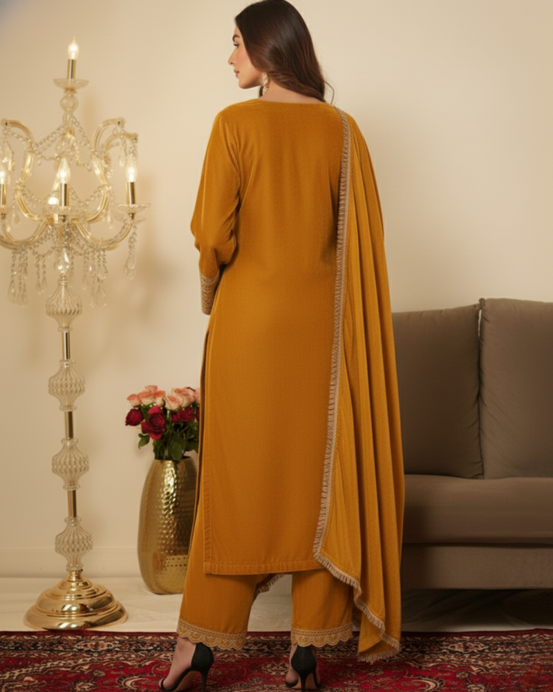 | Product Name | Yellow Velvet Embroidered Kurta Set | |