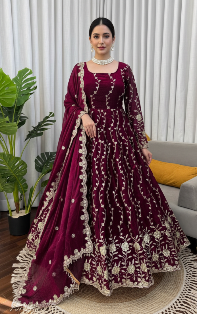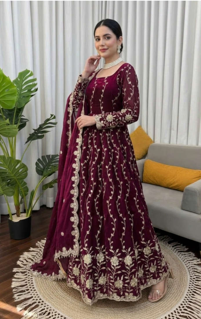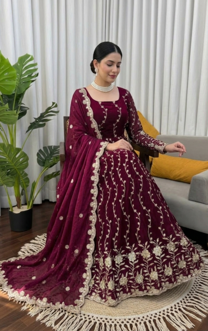 | Product Name | Wine Embroidered Fendy Silk Anarkali Set | |