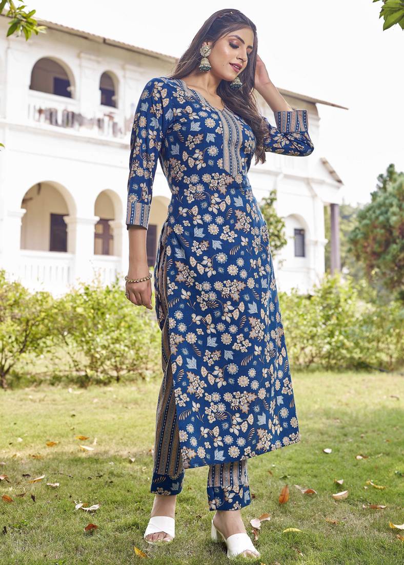 | Product Name | Women Turquoise Blue Floral Printed Straight Kurta Set | |