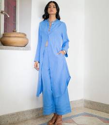 Blue embroidered linen kurta set