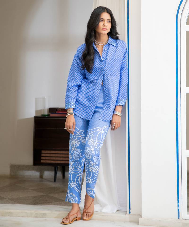| Product Name | Blue Floral Embroidered Linen Shirt | |