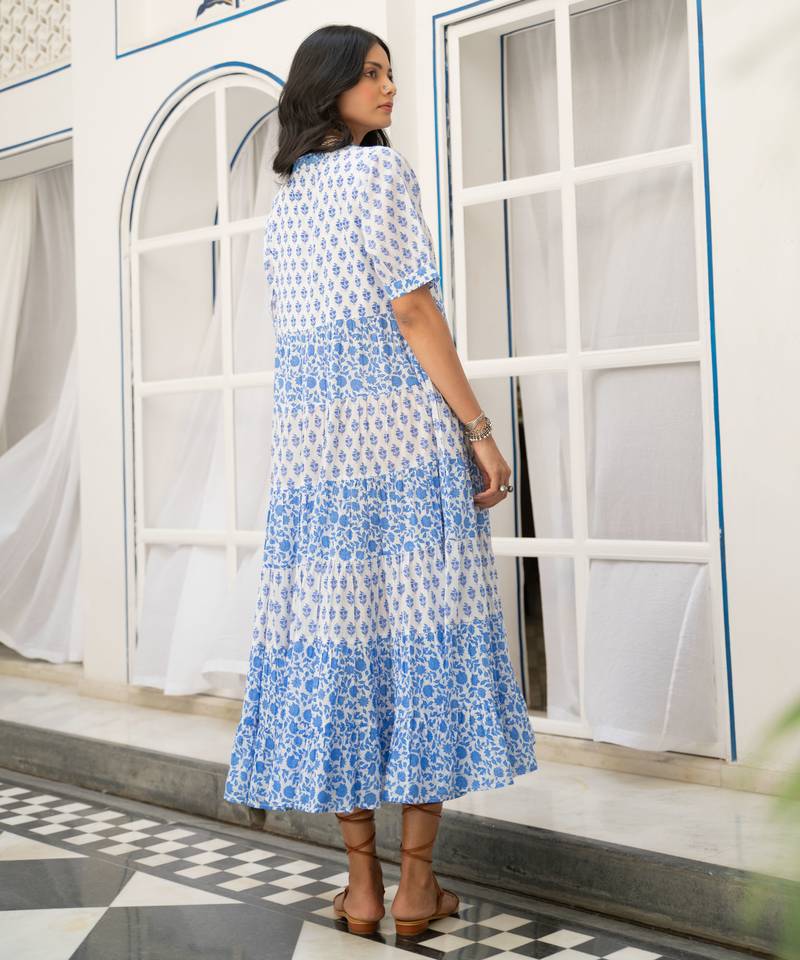 | Product Name | Blue White Tiered Printed Pure Cotton Dress | |
