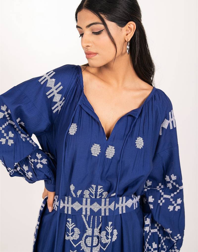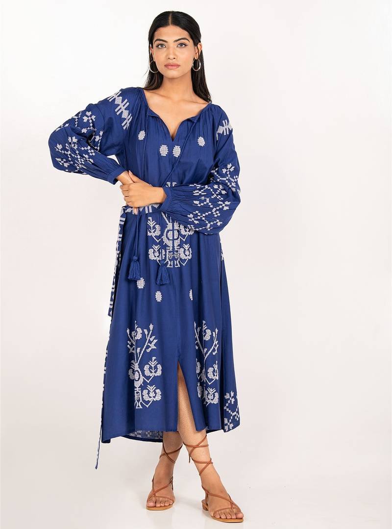 | Product Name | Capri Dress Navy Blue Embroidered Pure Cotton Maxi Dress | |