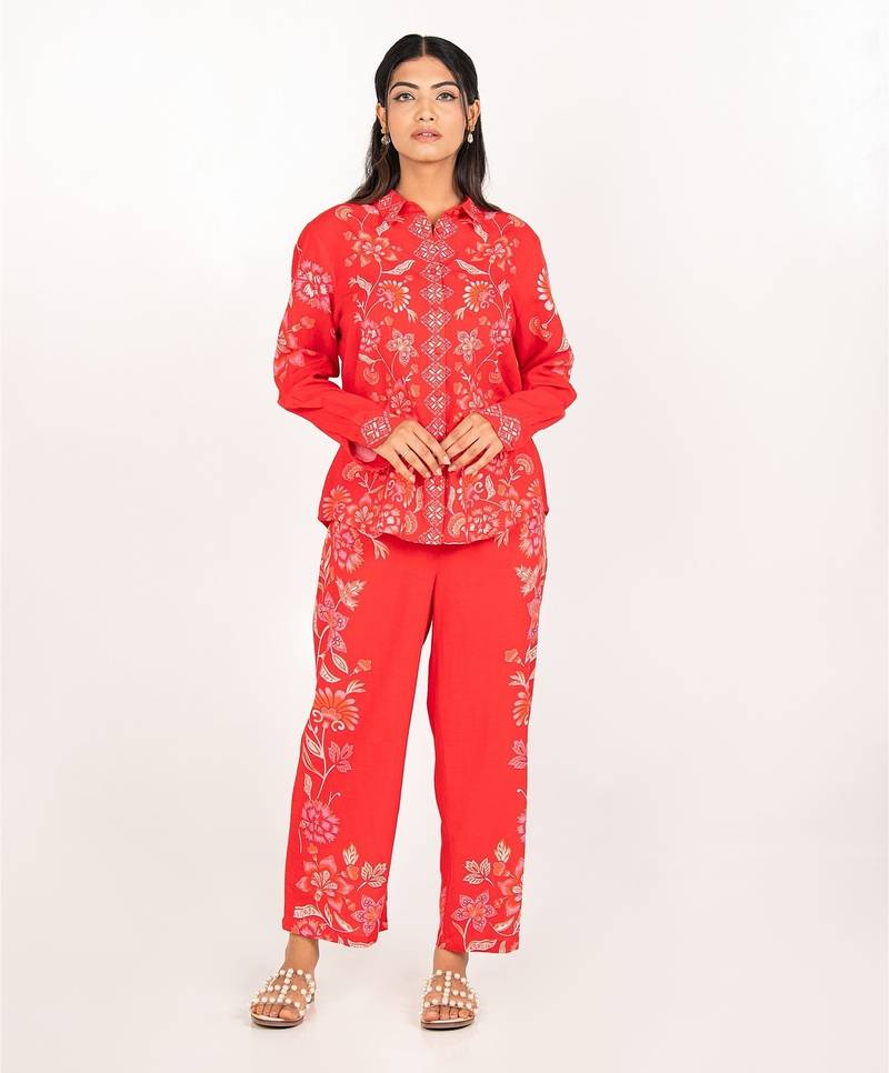 Product Name Maui Set Red Printed Pure Cotton Coord Set