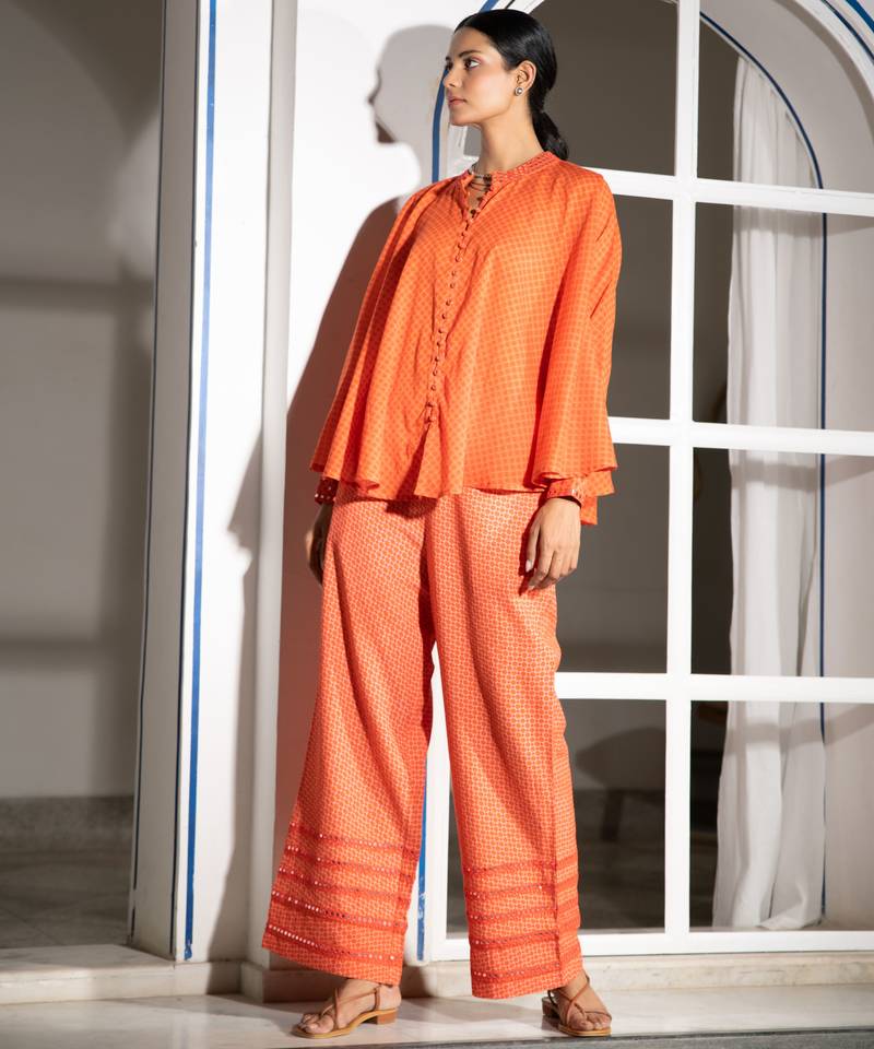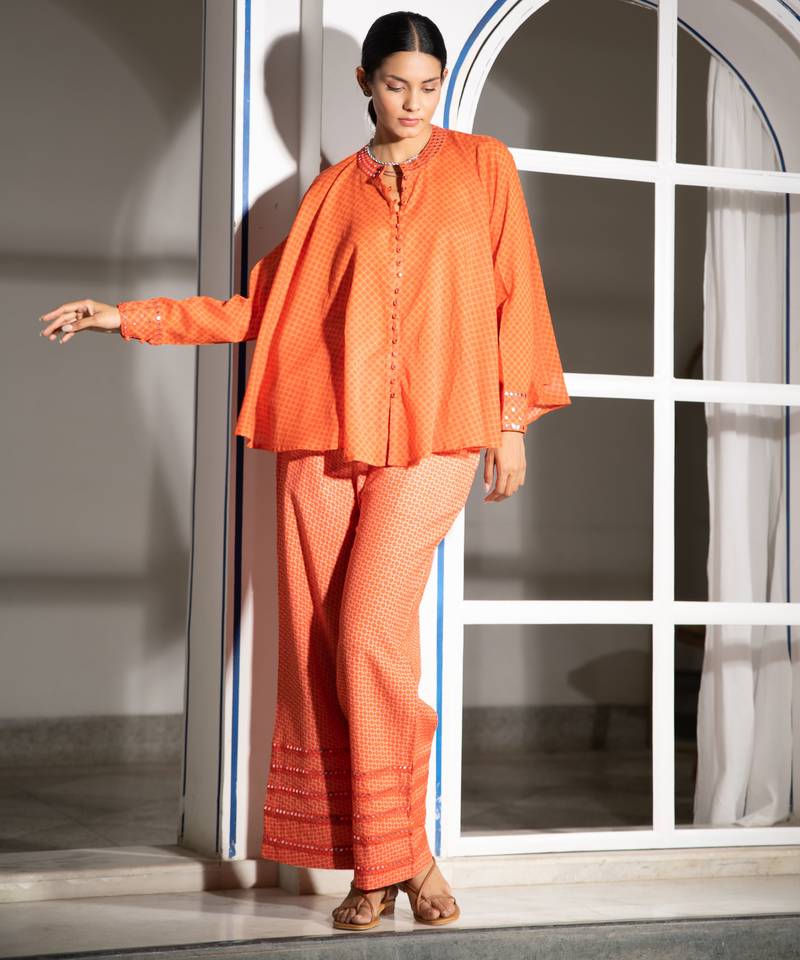 | Product Name | Orange Embroidered Linen Co Ord Set | |