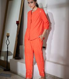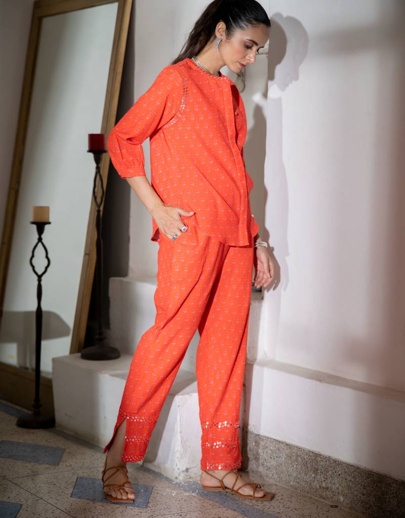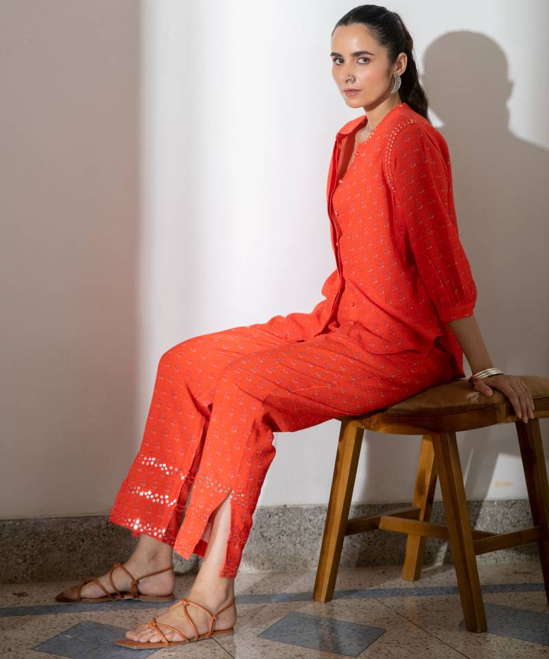 | Product Name | Orange Embroidered Linen Floral Co Ord Set | |