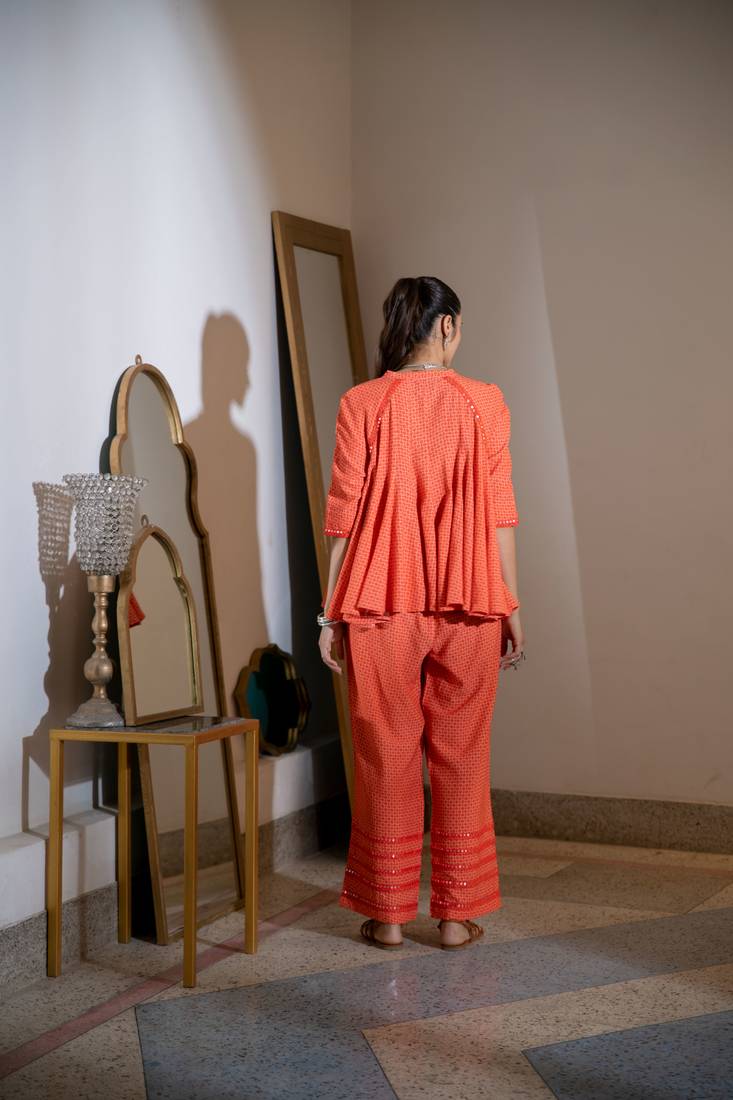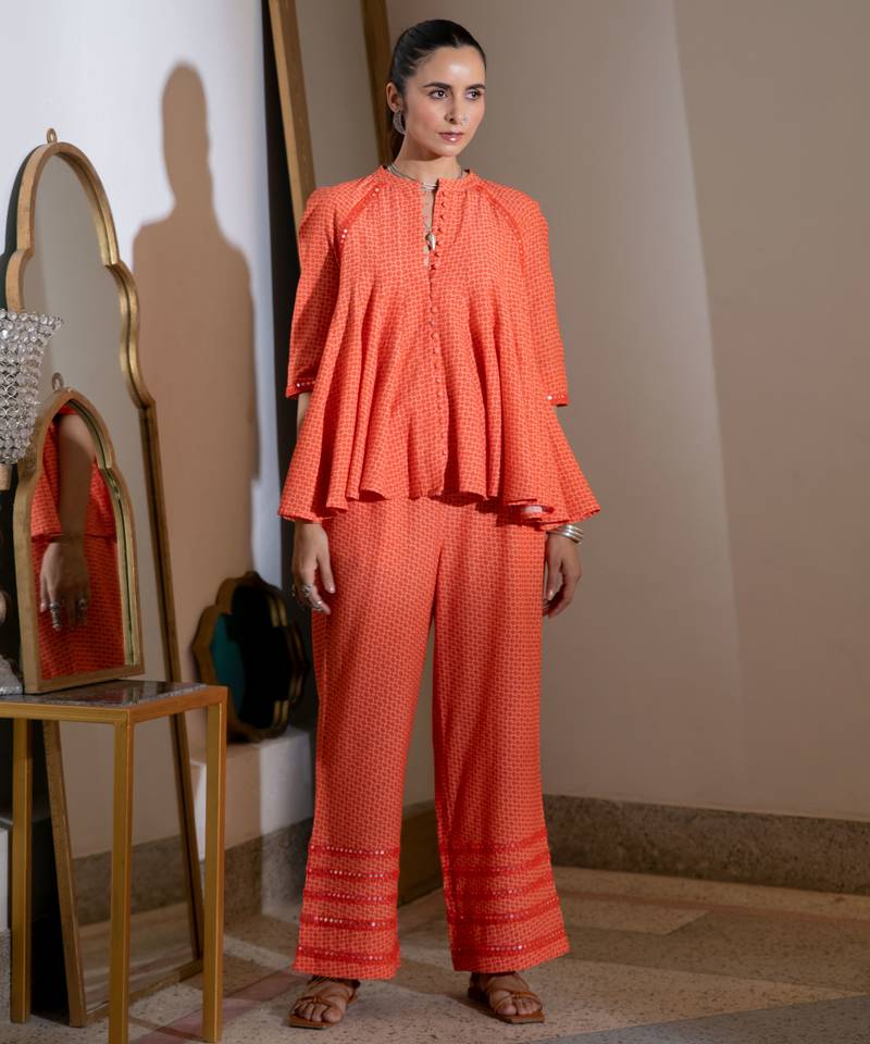| Product Name | Orange Embroidered Linen Kali Co Ord Set | |