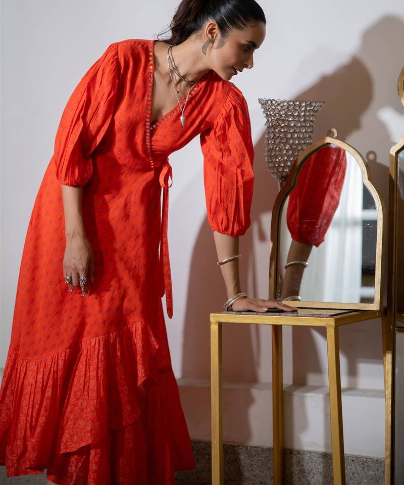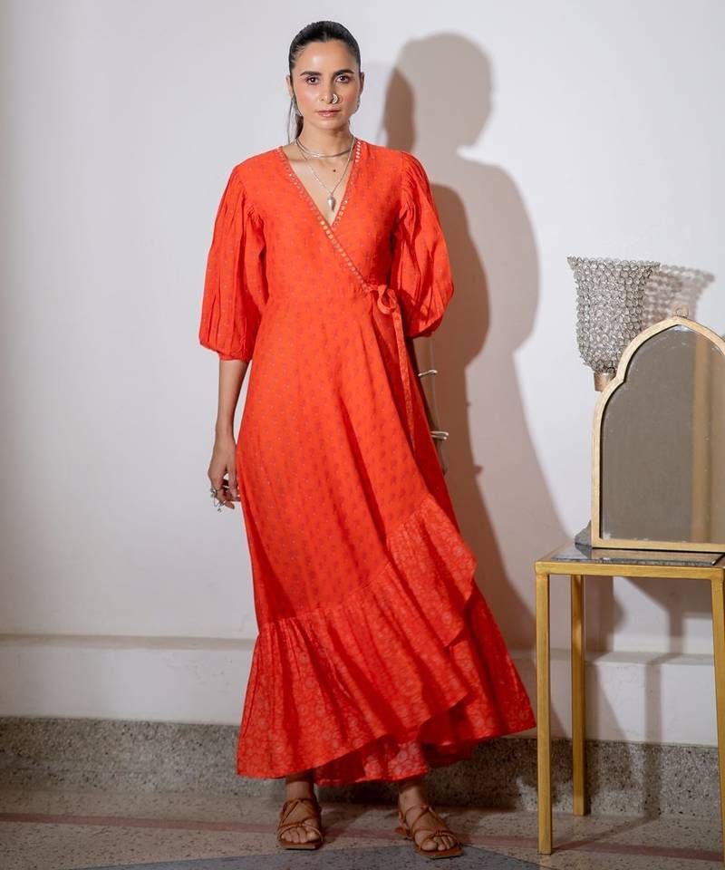 | Product Name | Orange Embroidered Pure Cotton Wrap Dress | |