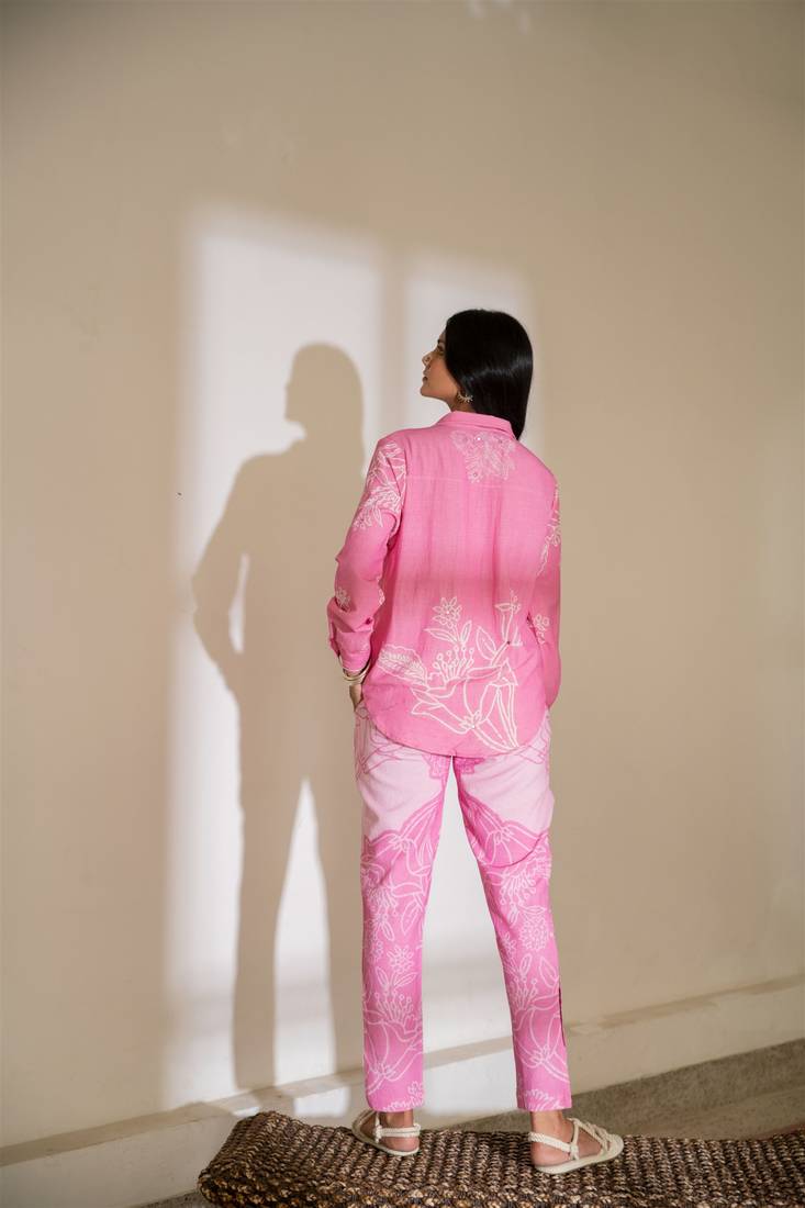 Pink printed linen co ord set