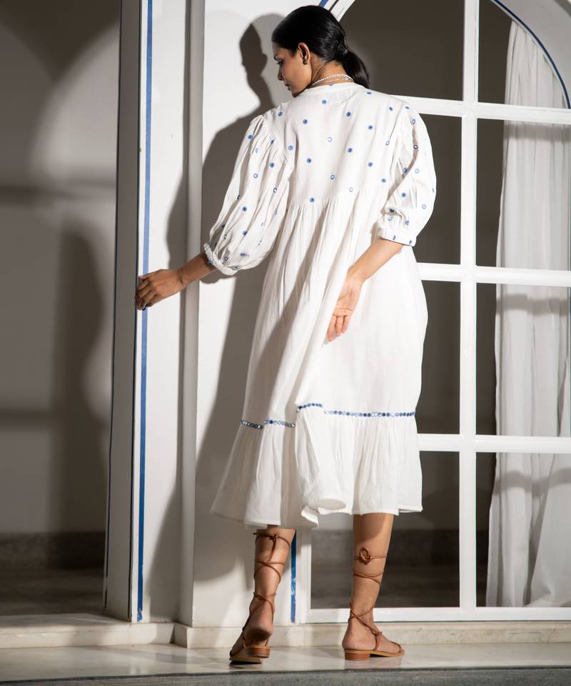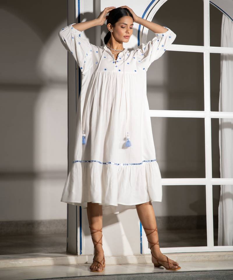 | Product Name | White Embroidered Linen Maxi Dress | |