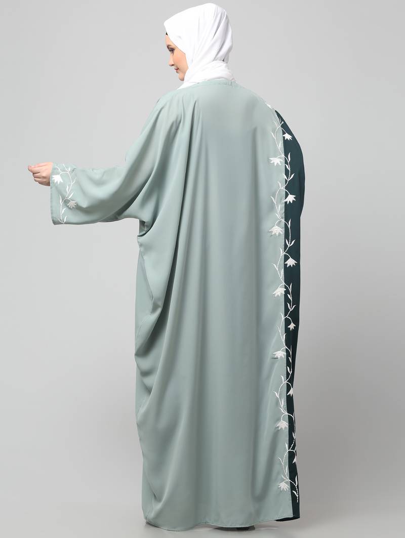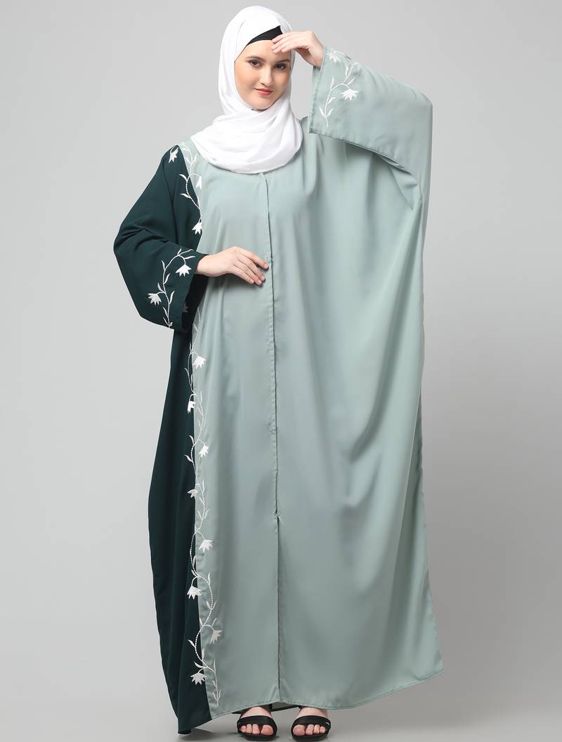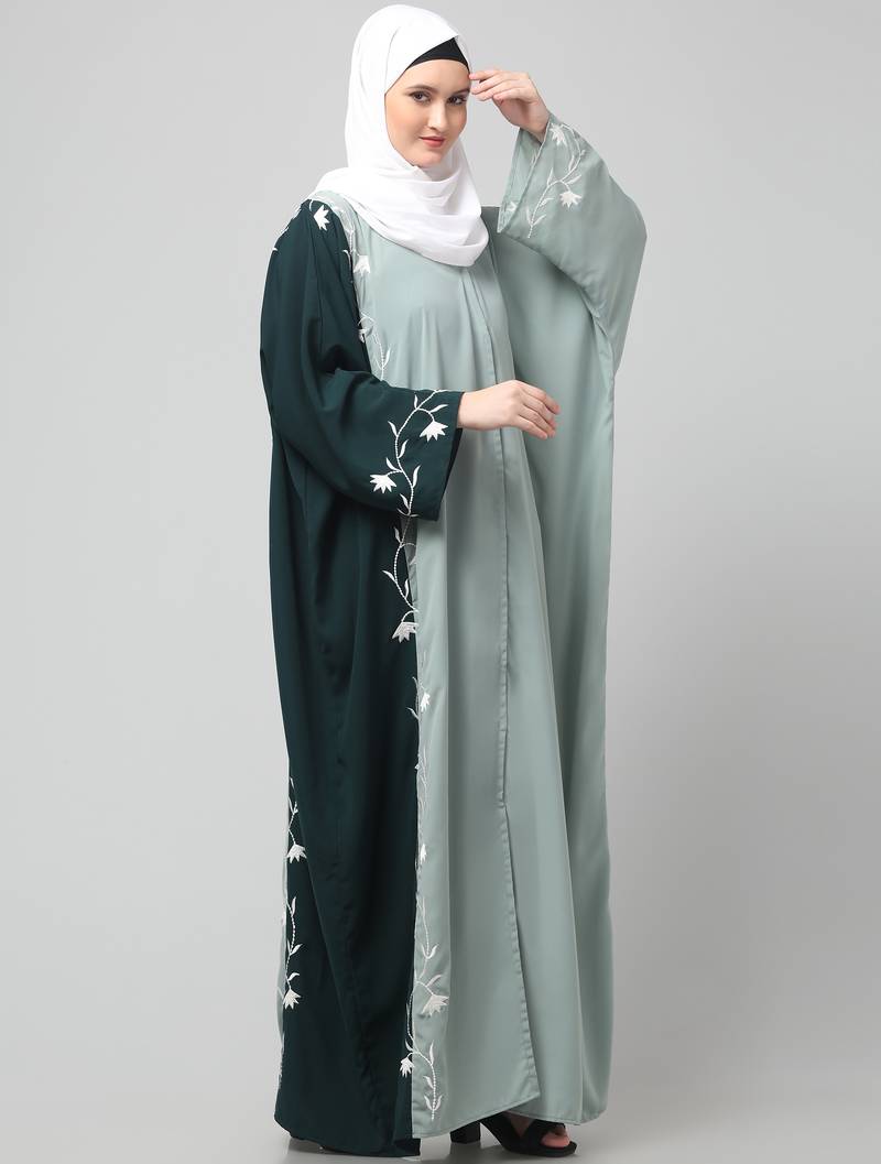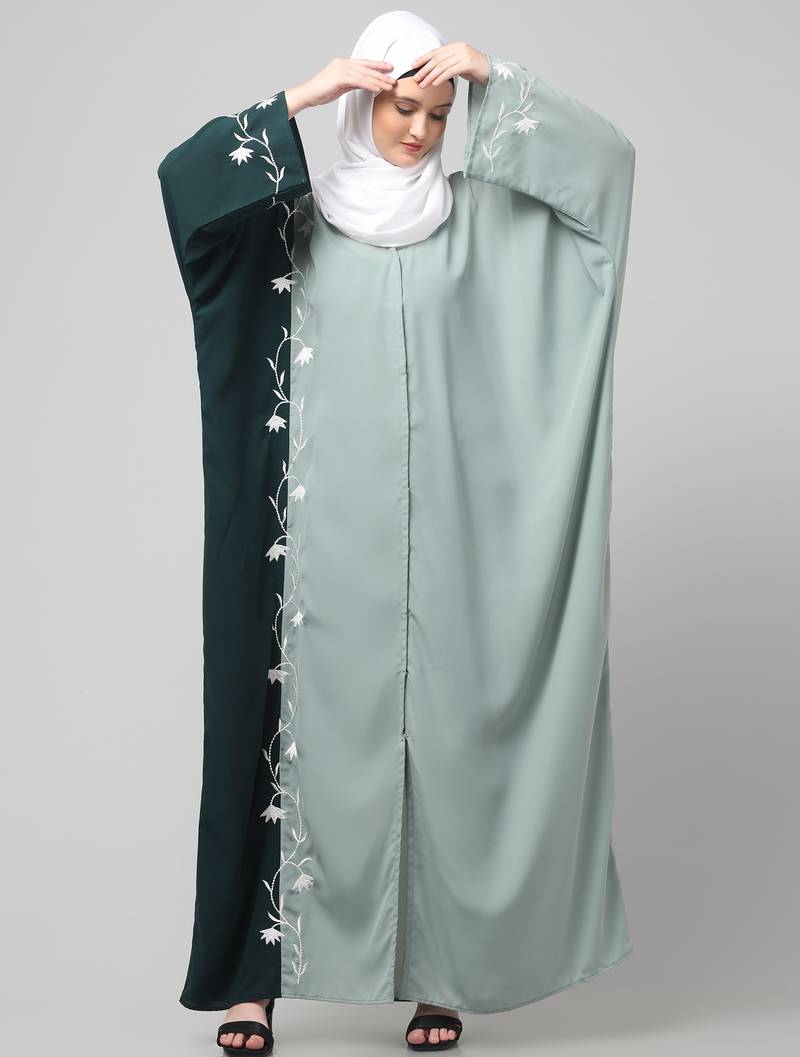 Product Name | Embroidery At Fron And Sleeves Contrast Front Open Kaftan Abaya With Hijab | |