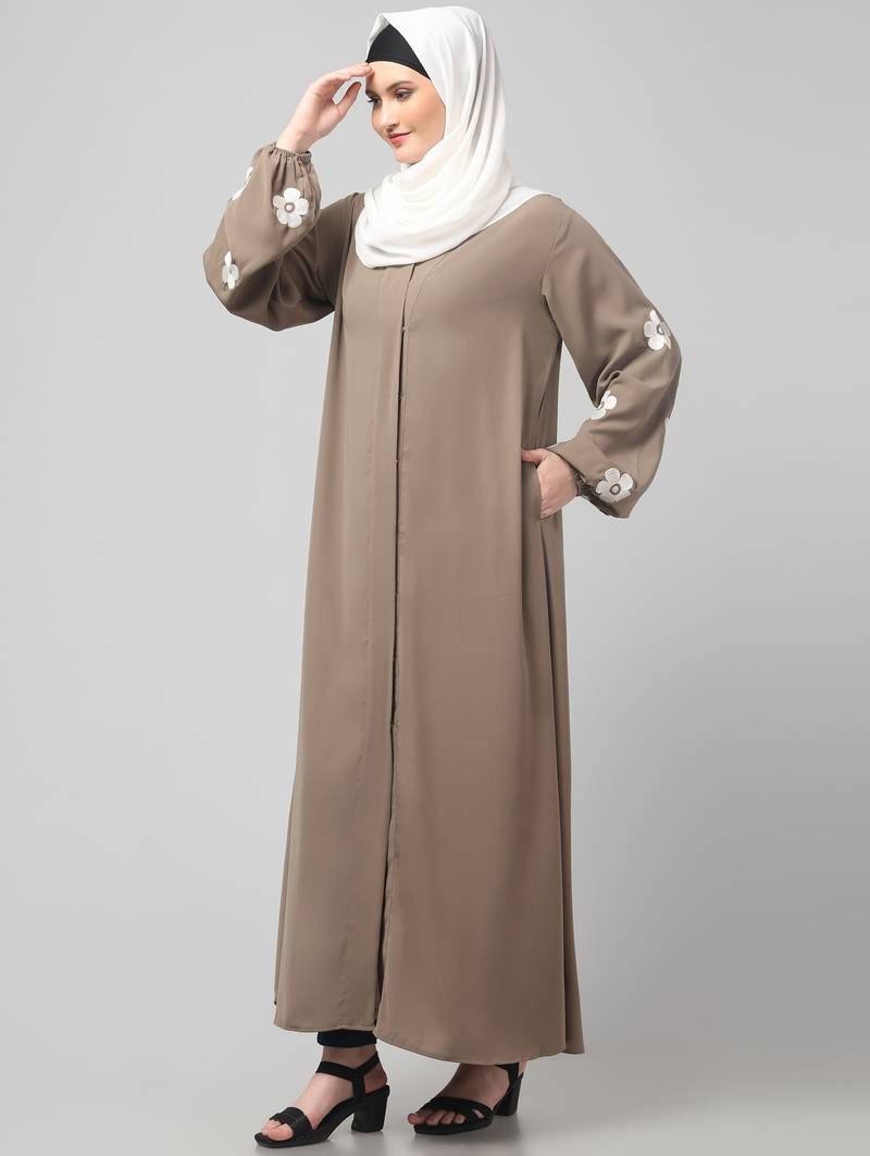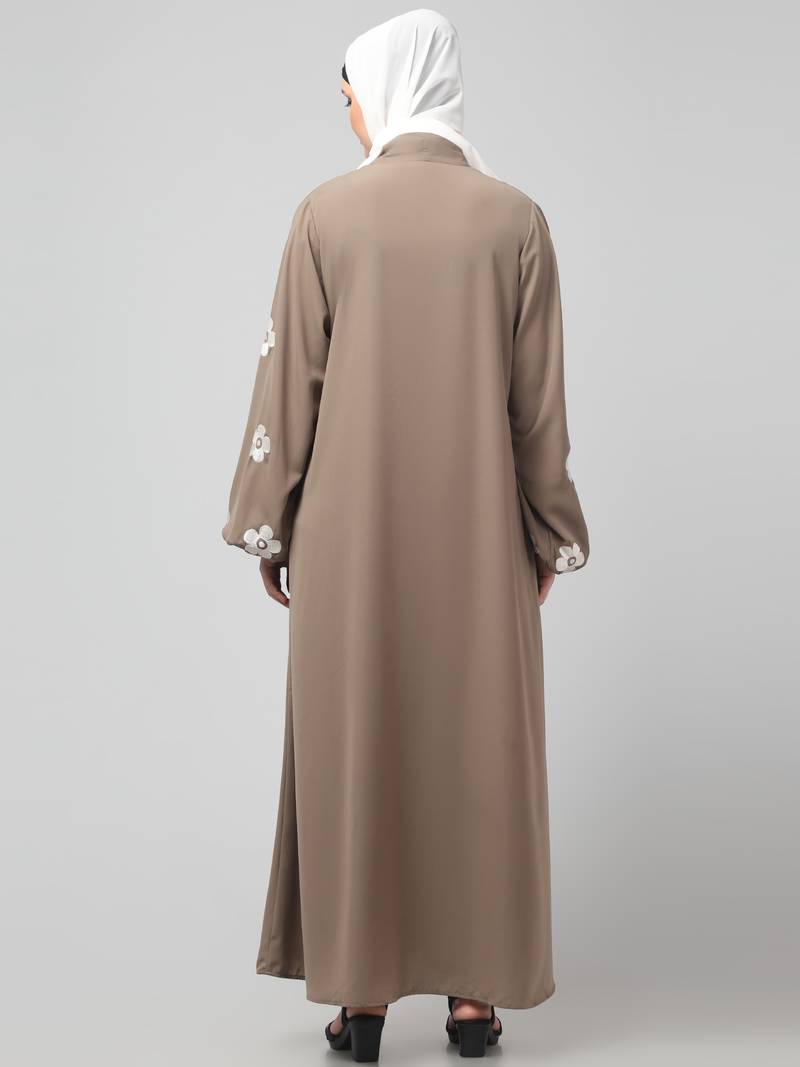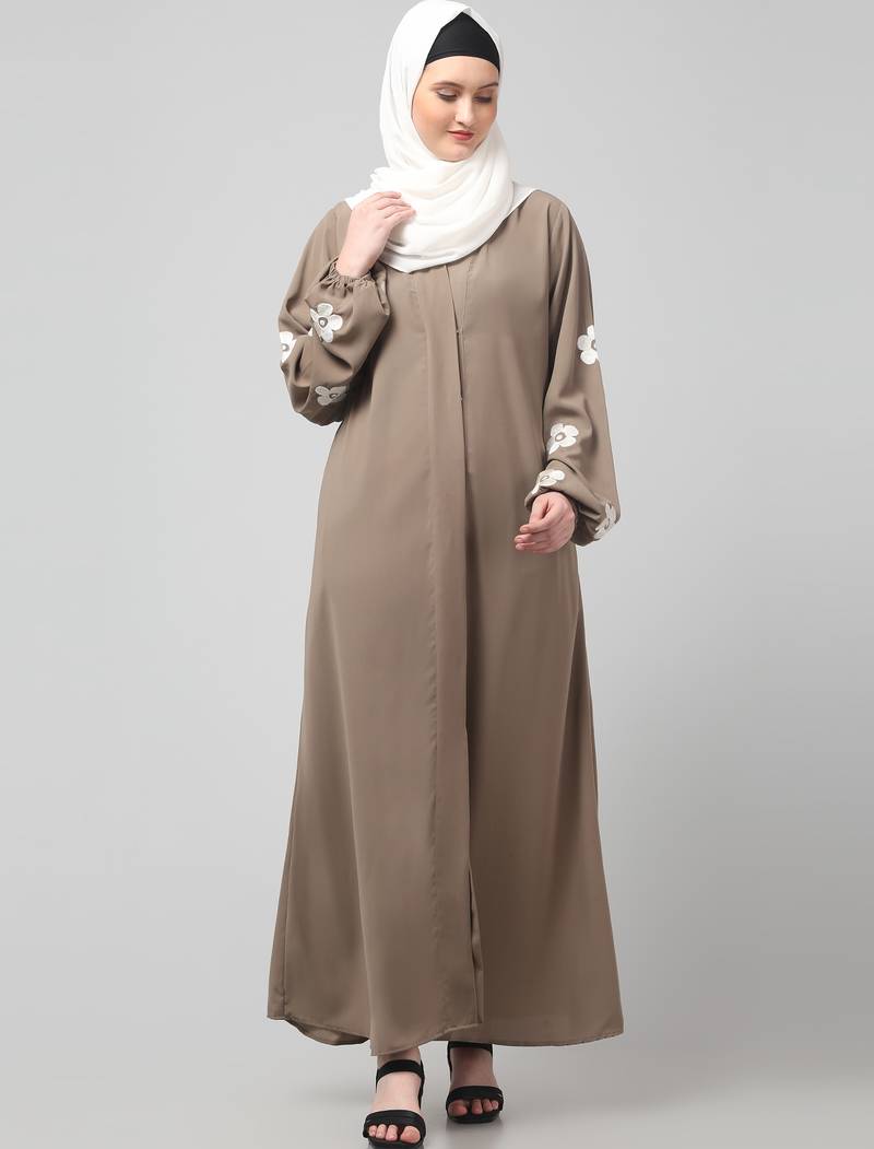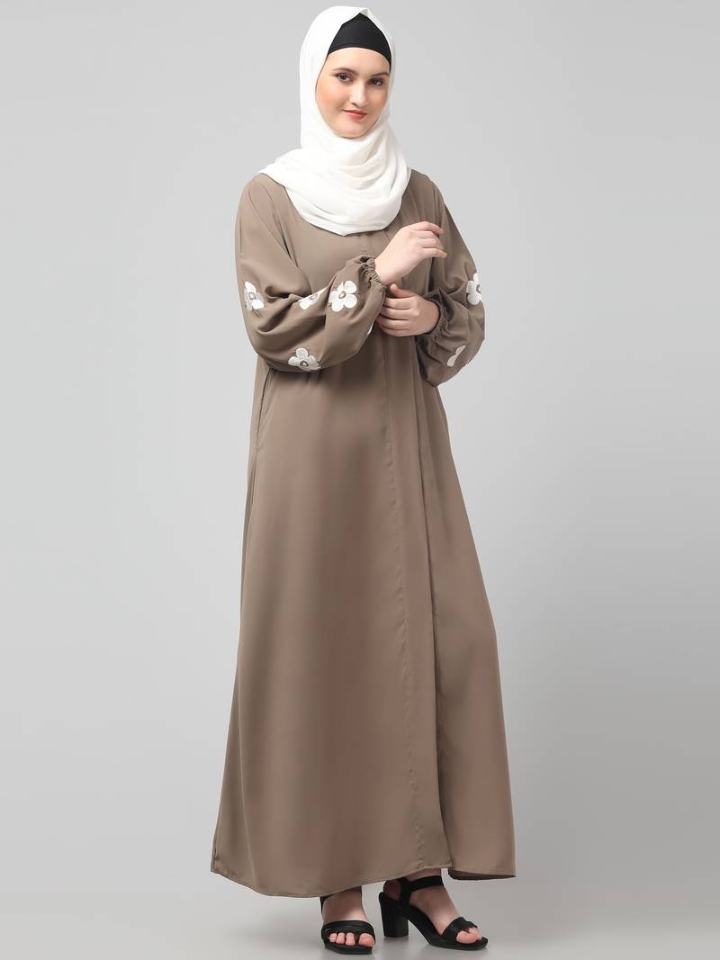 Flowers embboidery at sleeve and hijab a line flare at bottom abaya with hijab