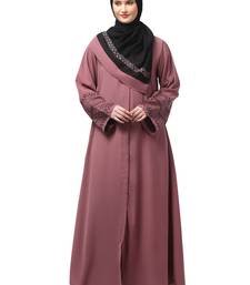 Sleeves and hijab flowers and lines embroidry front open abaya