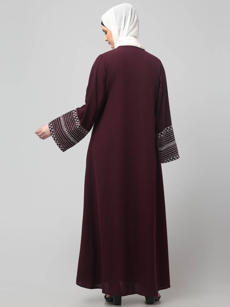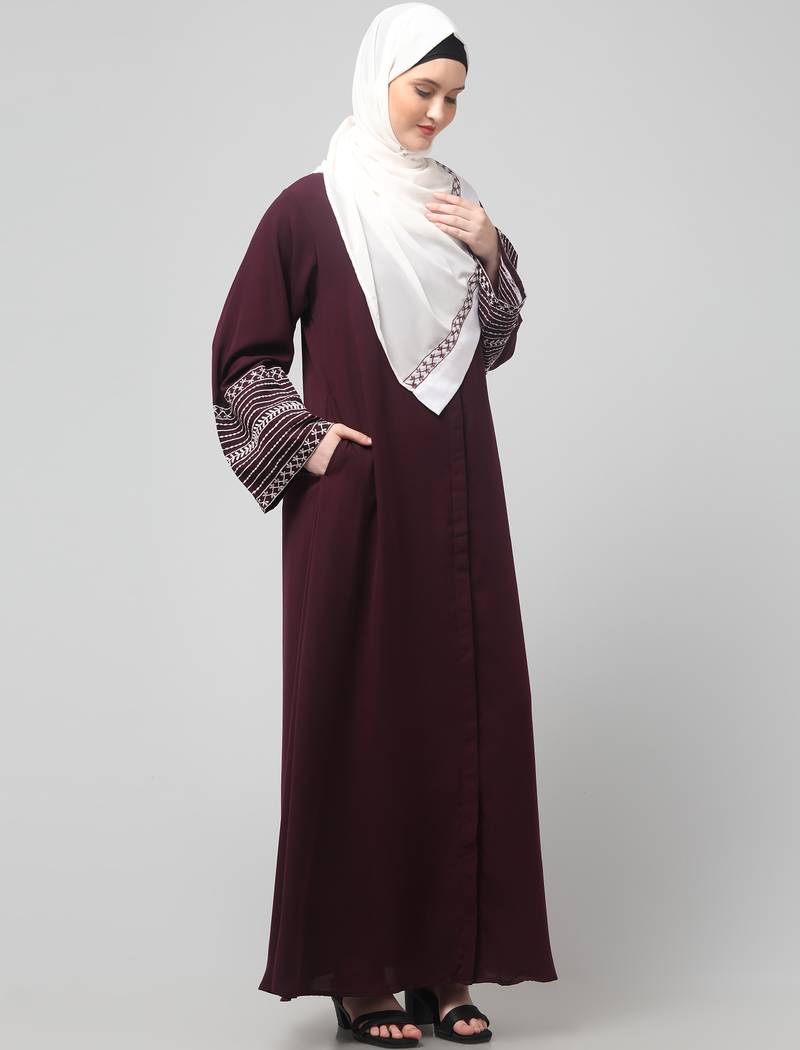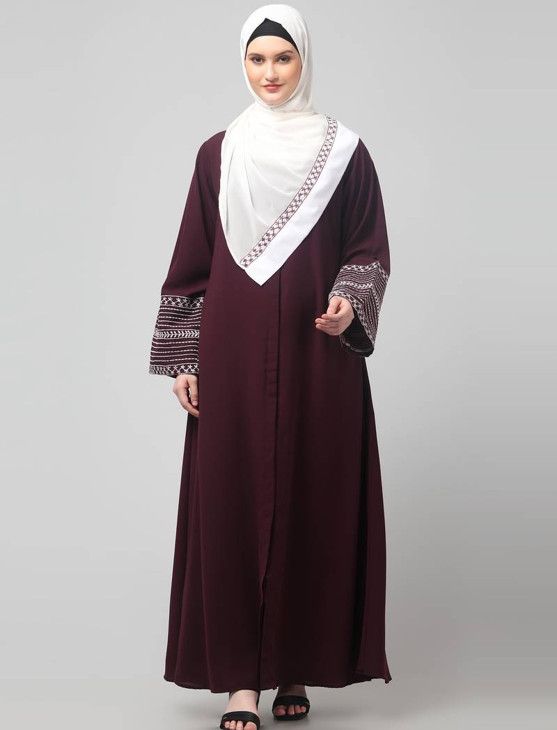 Sleeves and hijab flowers and lines embroidry front open abaya