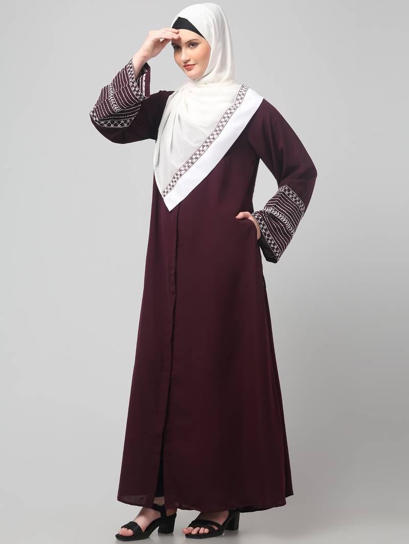 Product Name | Sleeves And Hijab Flowers And Lines Embroidry Front Open Abaya | |