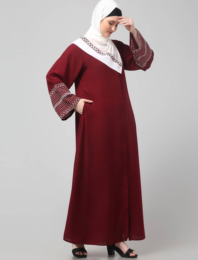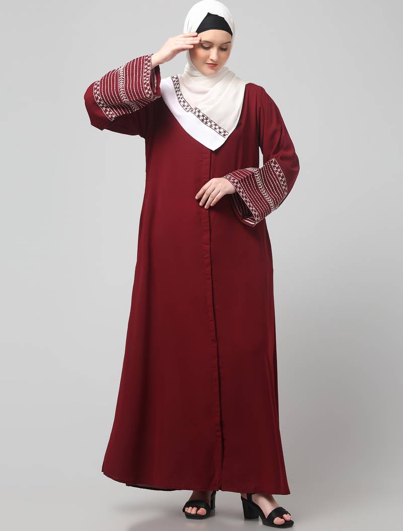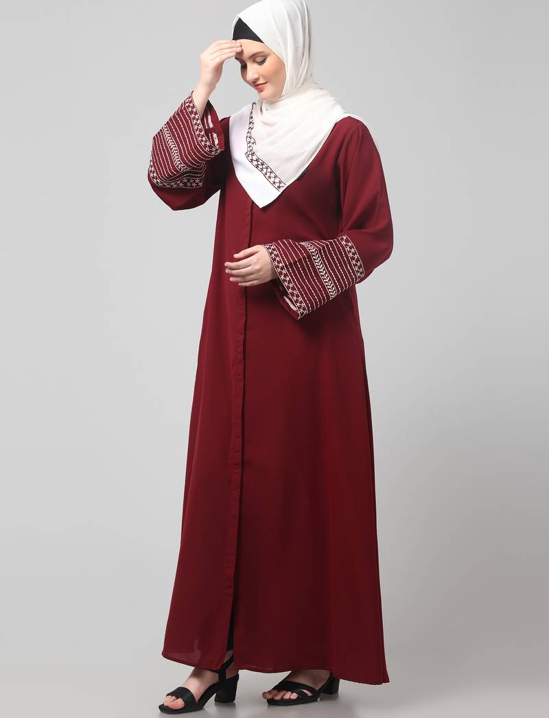 Product Name | Sleeves And Hijab Flowers And Lines Embroidry Front Open Abaya | |