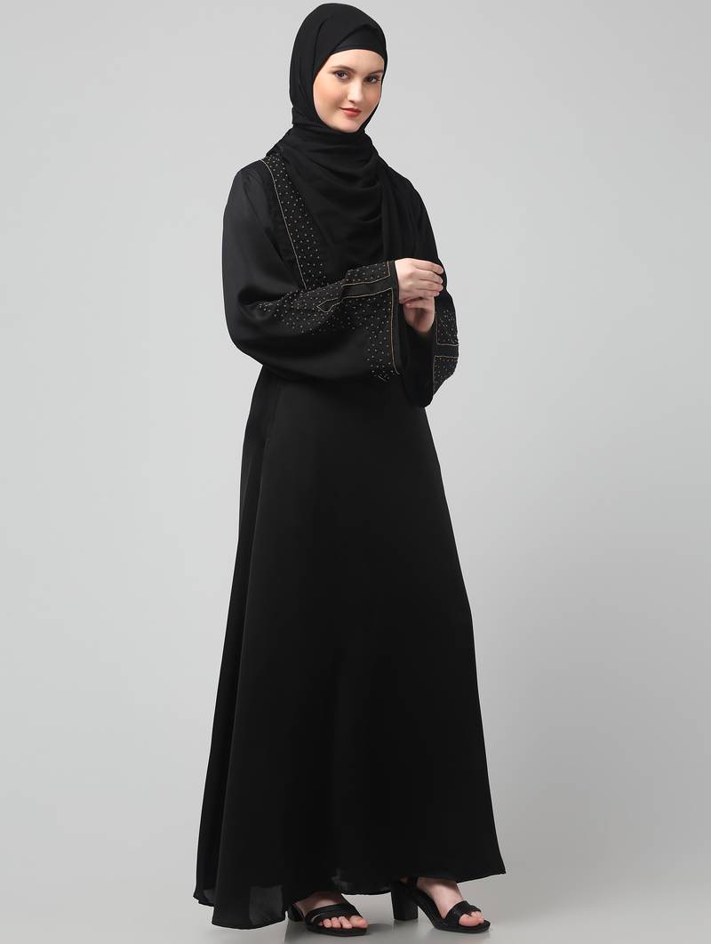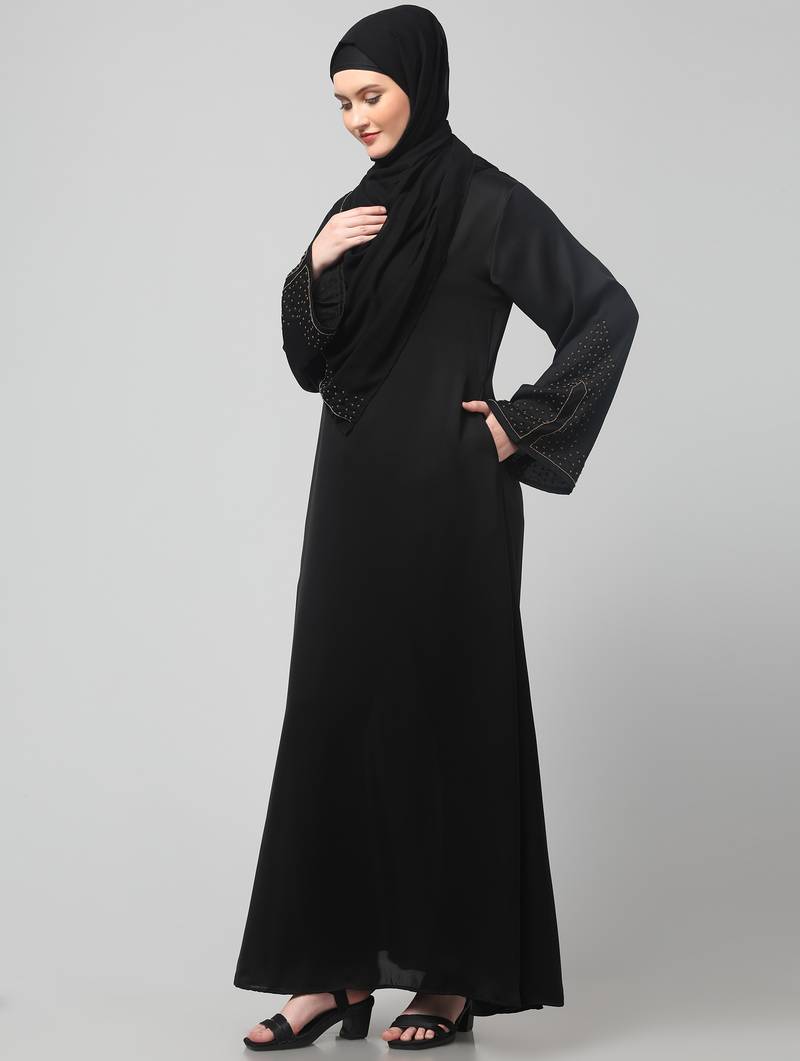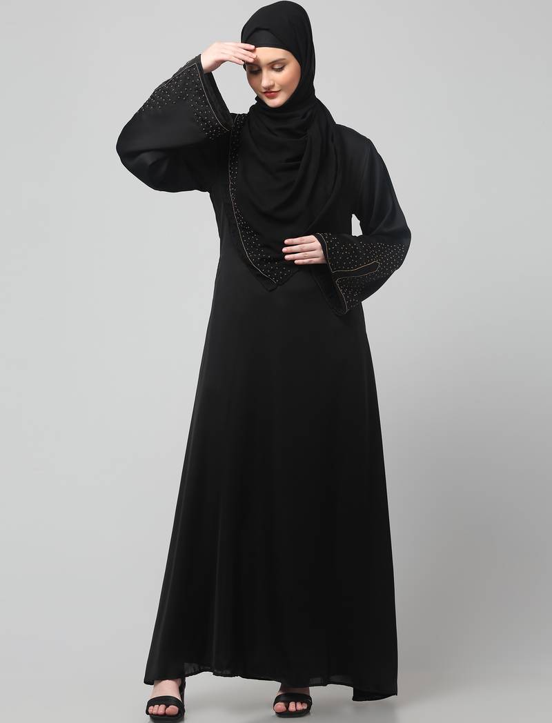 Product Name | Sleeves And Hijab Golden Hand Embroidred A Line Abaya | |