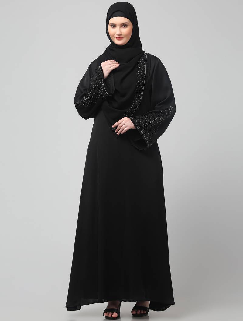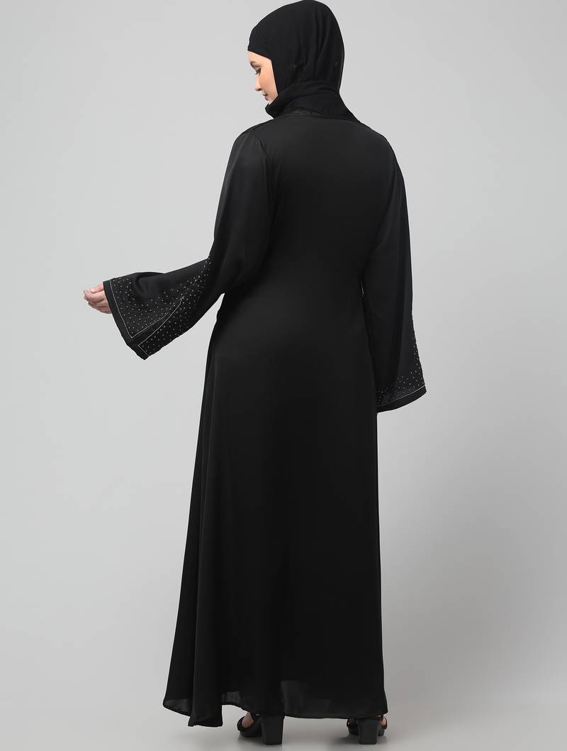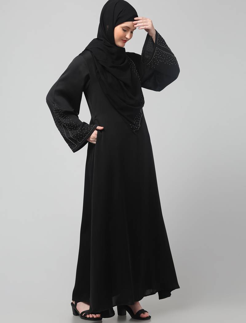 Product Name | Sleeves And Hijab Silver Hand Embroidred A Line Abaya | |