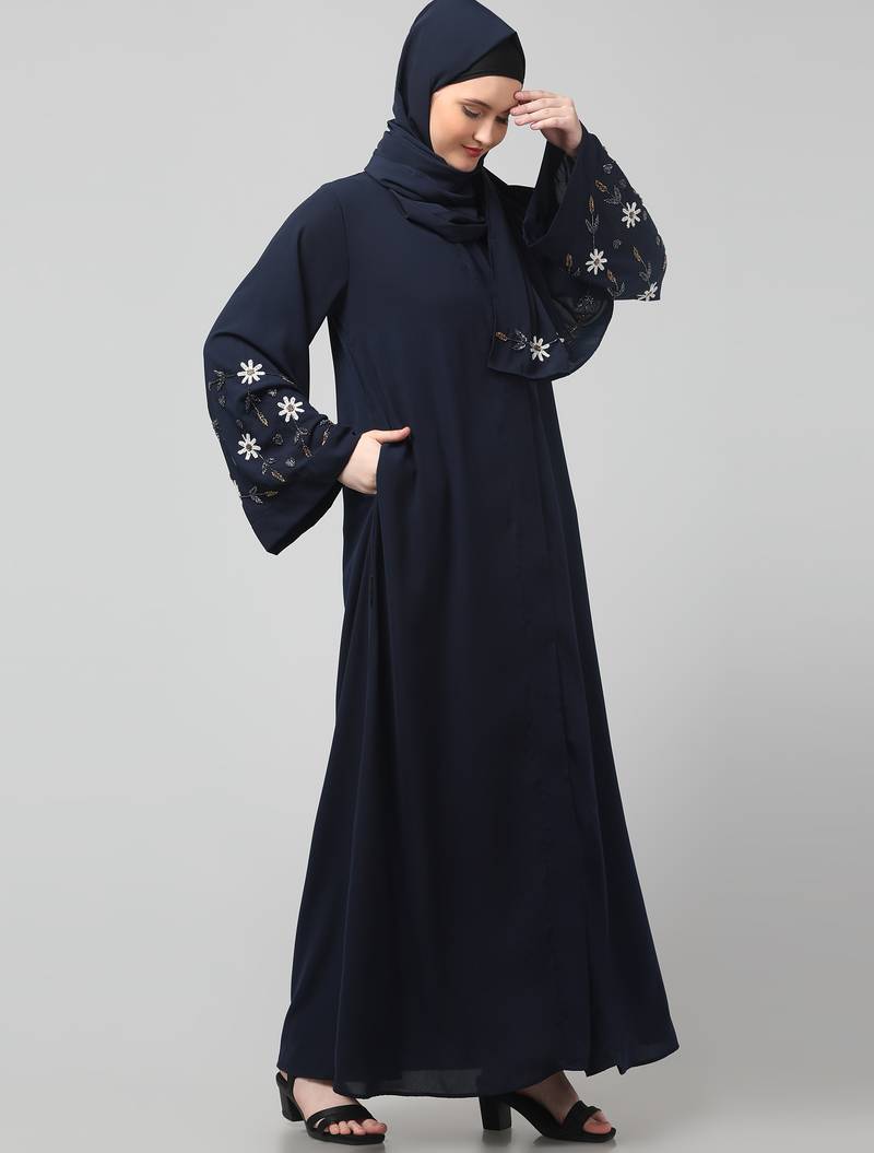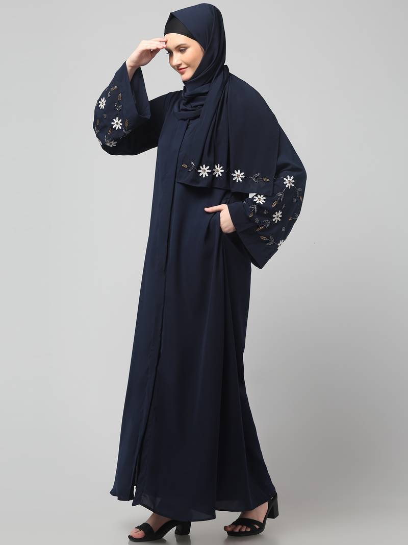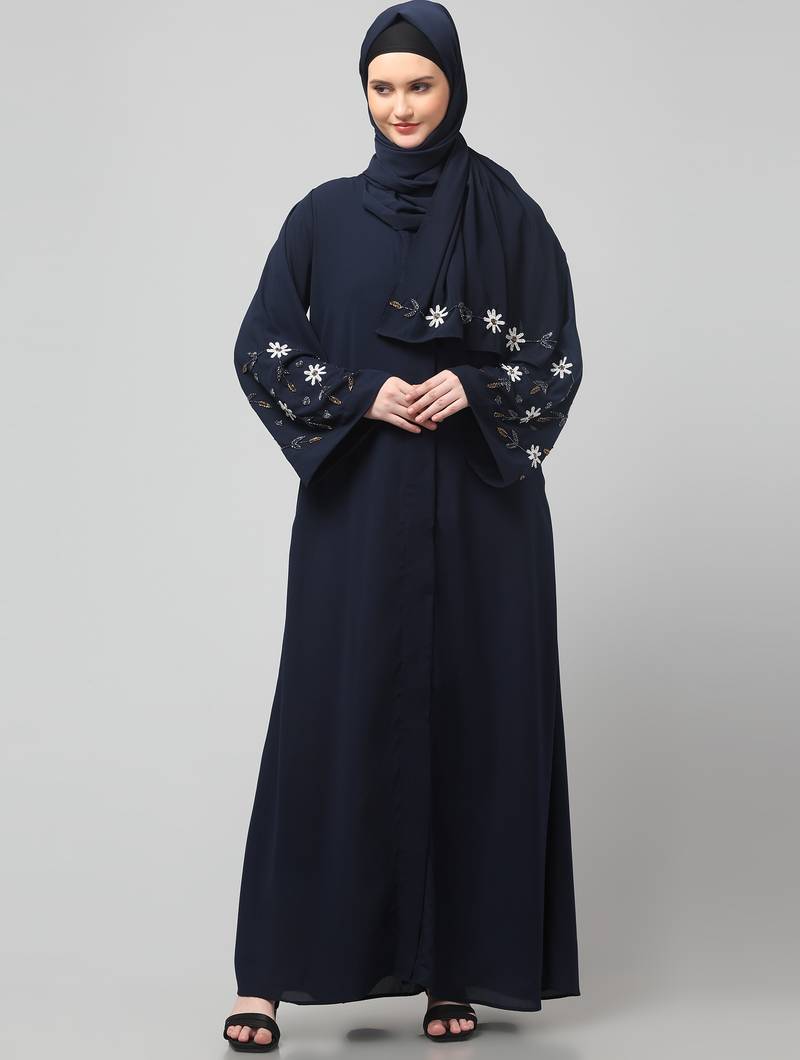 Product Name | Sleeves Hand Embrodery Front Open Dubai Style Abaya With Embroidered Nida Hijab | |