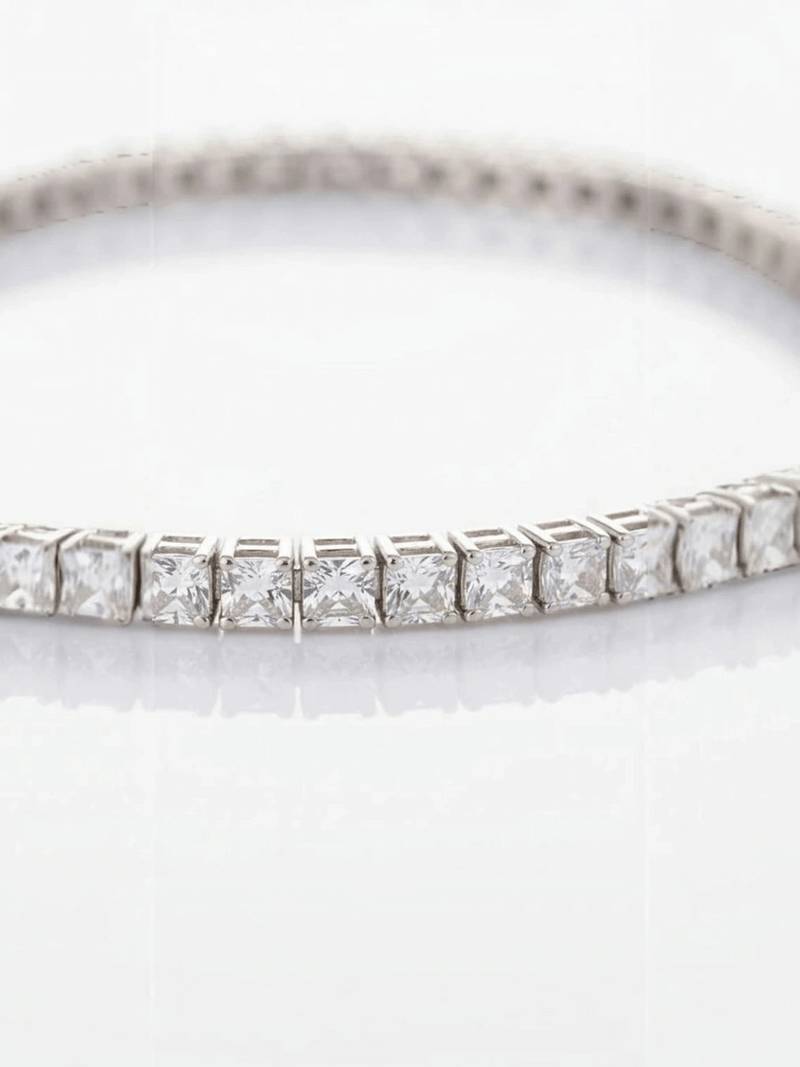 The Material Is 925 Silver With Swarovski Princess Cut Fitting. Crafted To Perfection For A Flawless, Luxurious, And Elegant Finish.